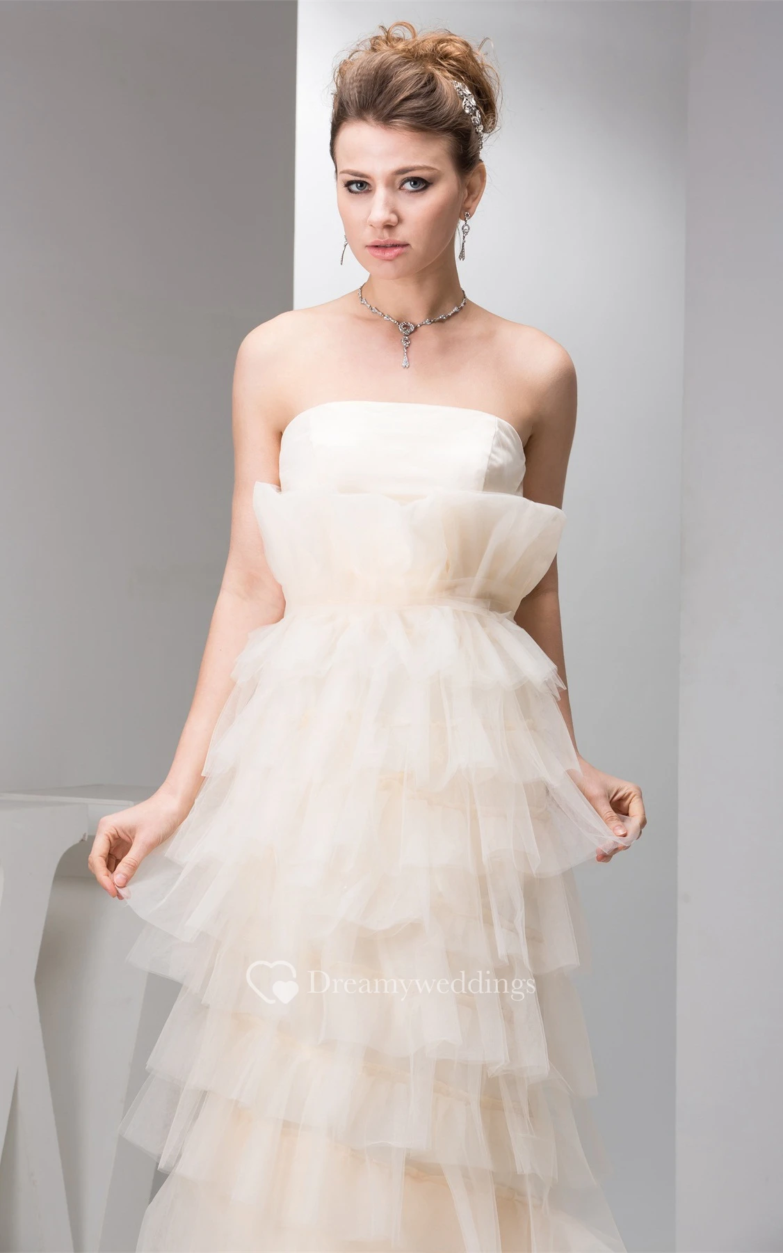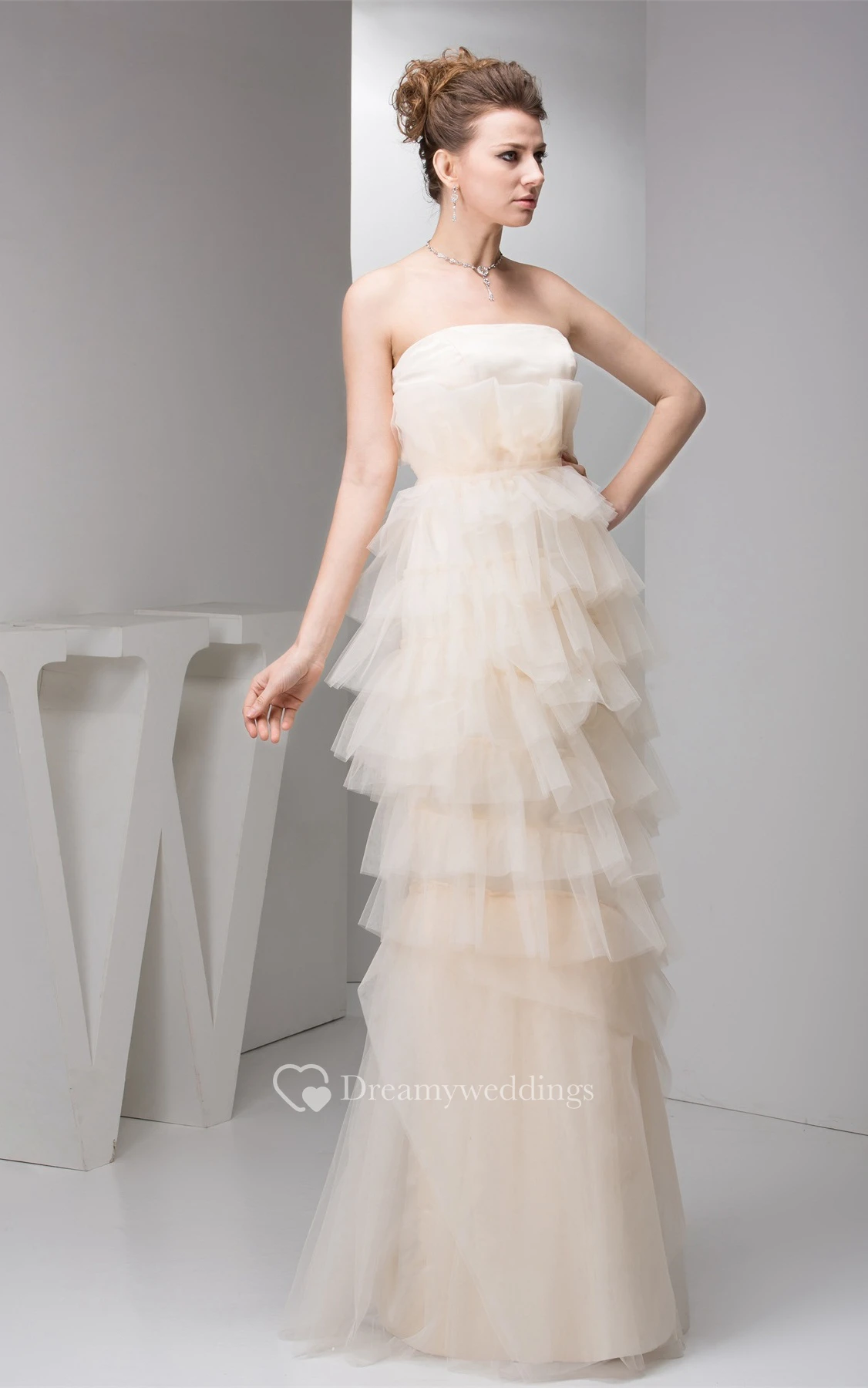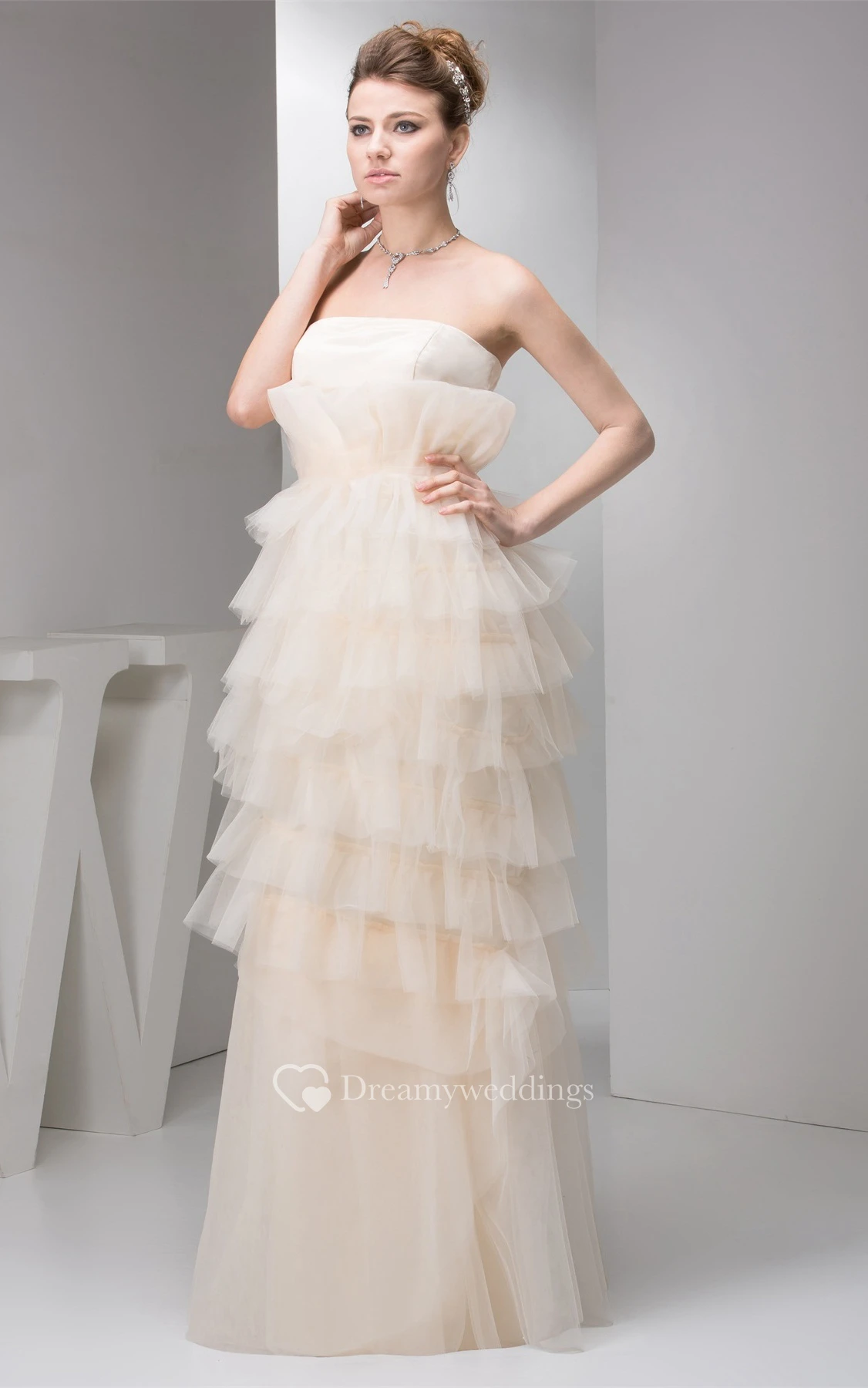 Strapless Floor-Length Tulle Pleats and Dress With Tiers