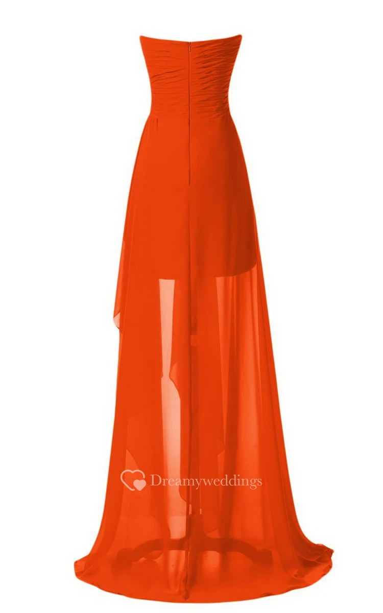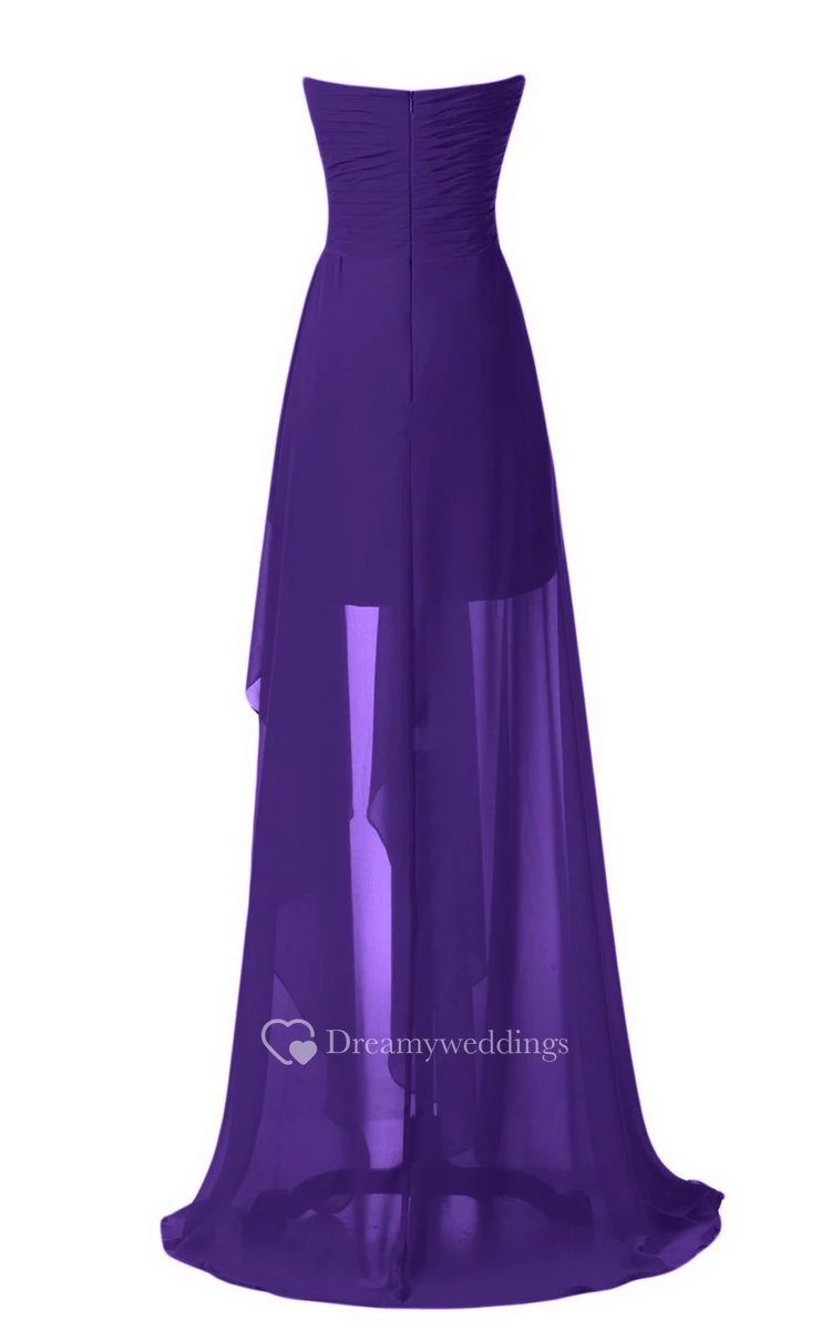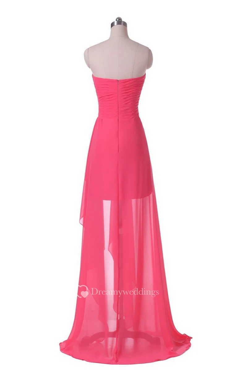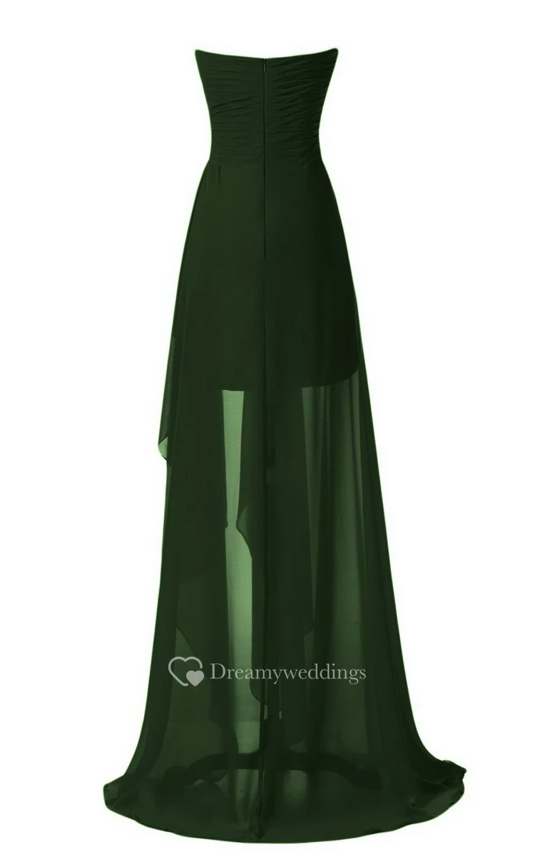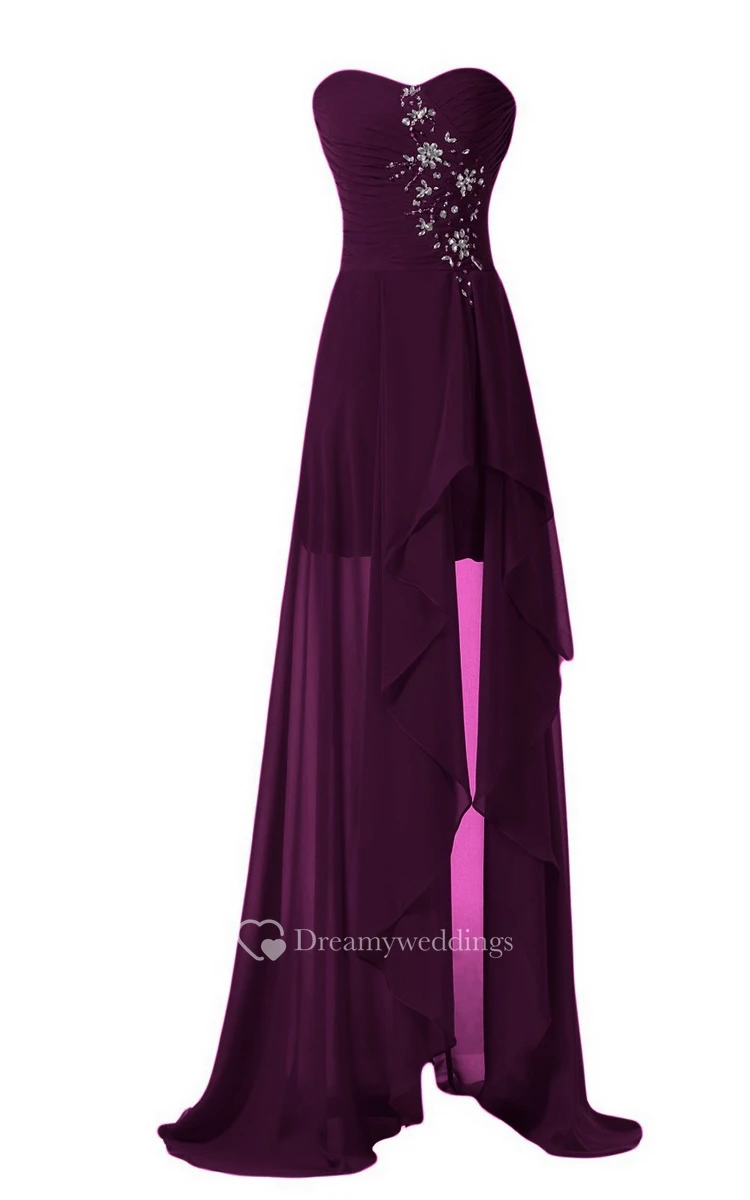 Strapless Front Slit Dress With Draping and Appliques