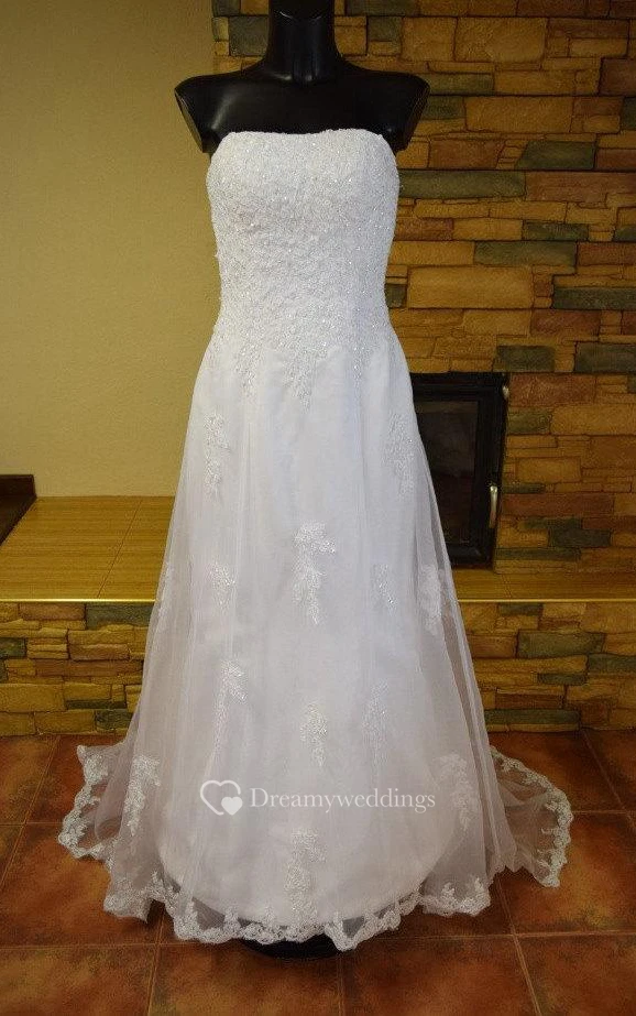 Strapless Lace A-Line Dress With Beadings With Court Train