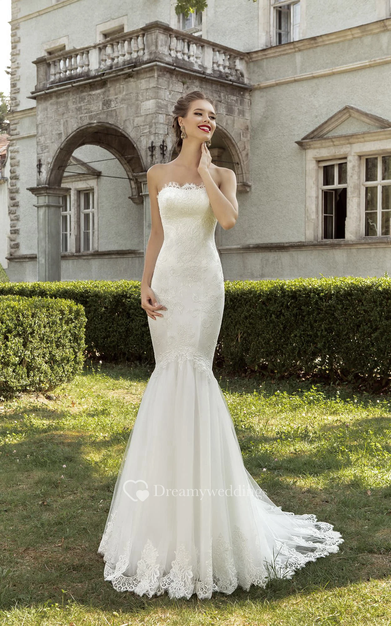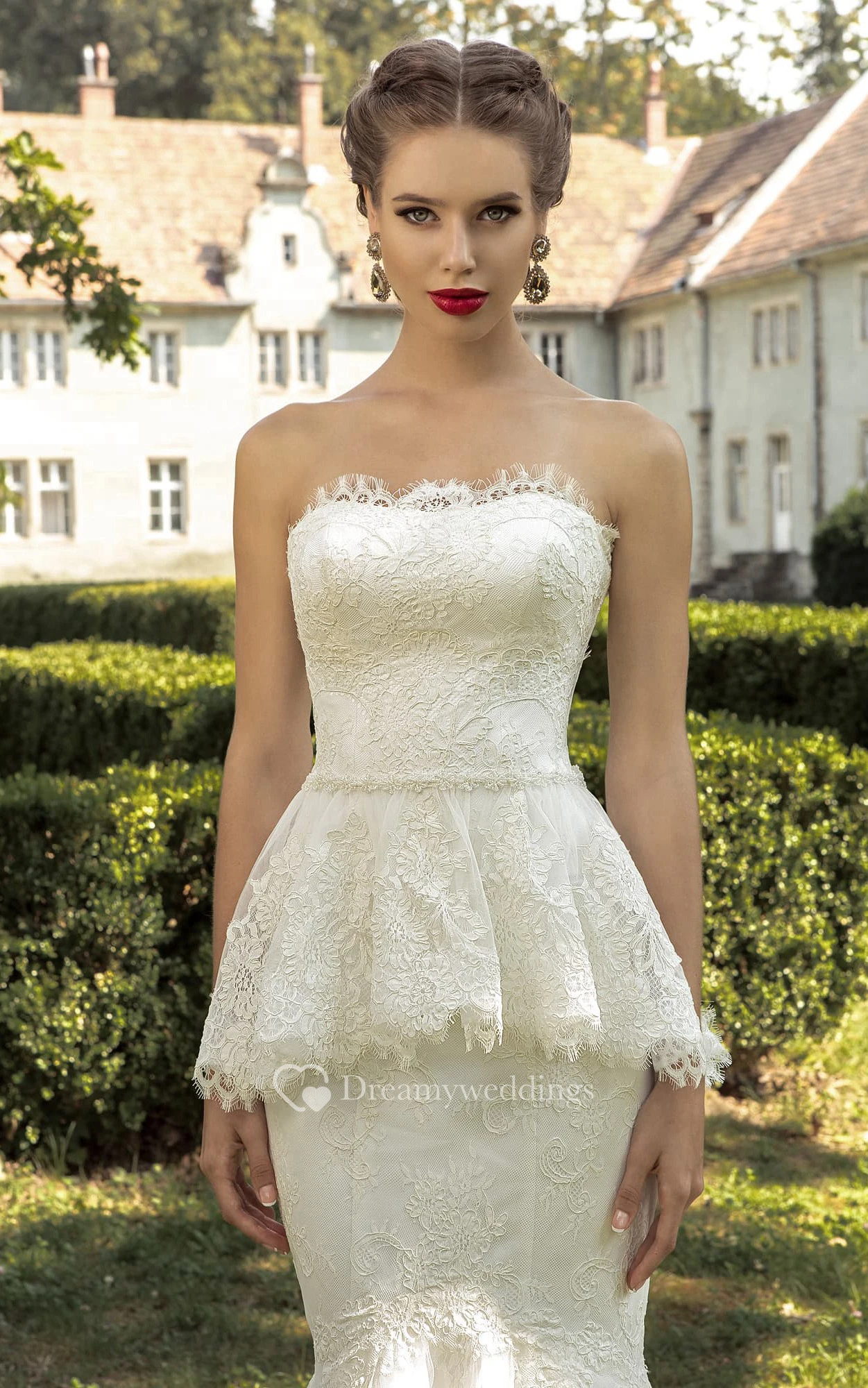 Strapless Lace Mermaid Sheath Dress With Peplum