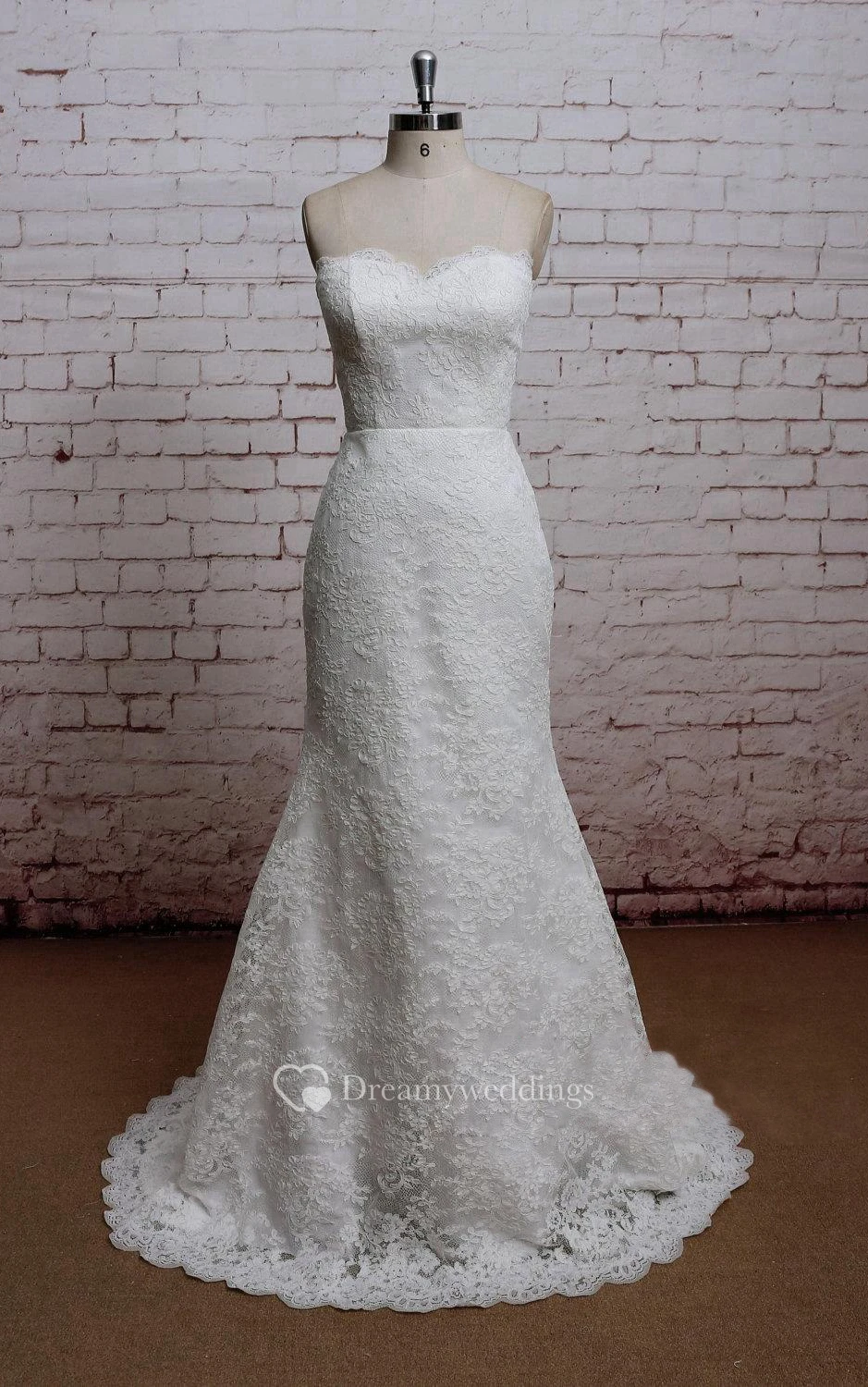 Strapless Lace Trumpet Bridal Dress With Court Train