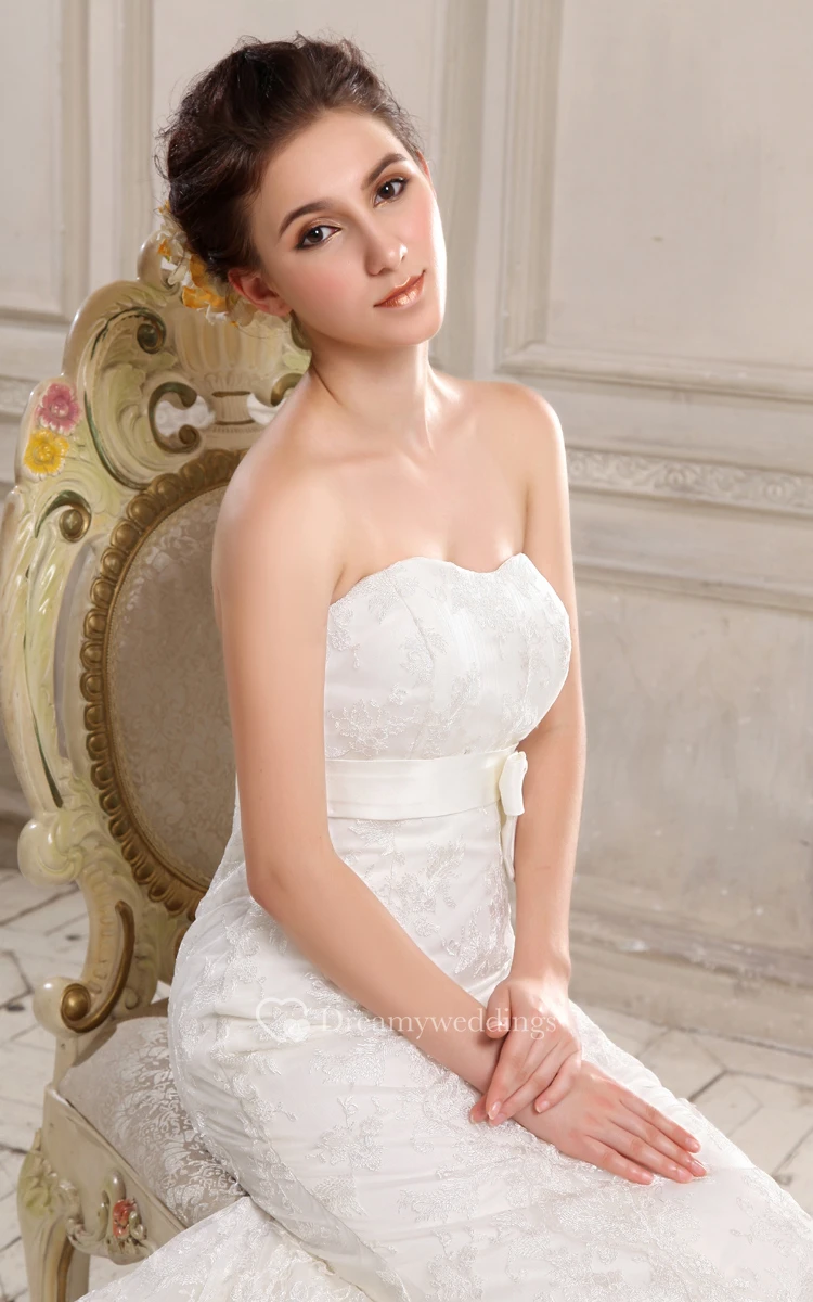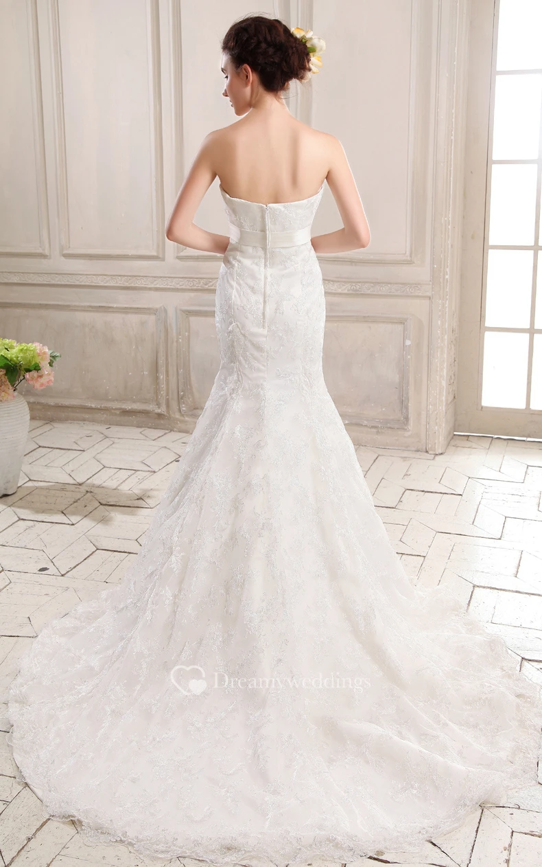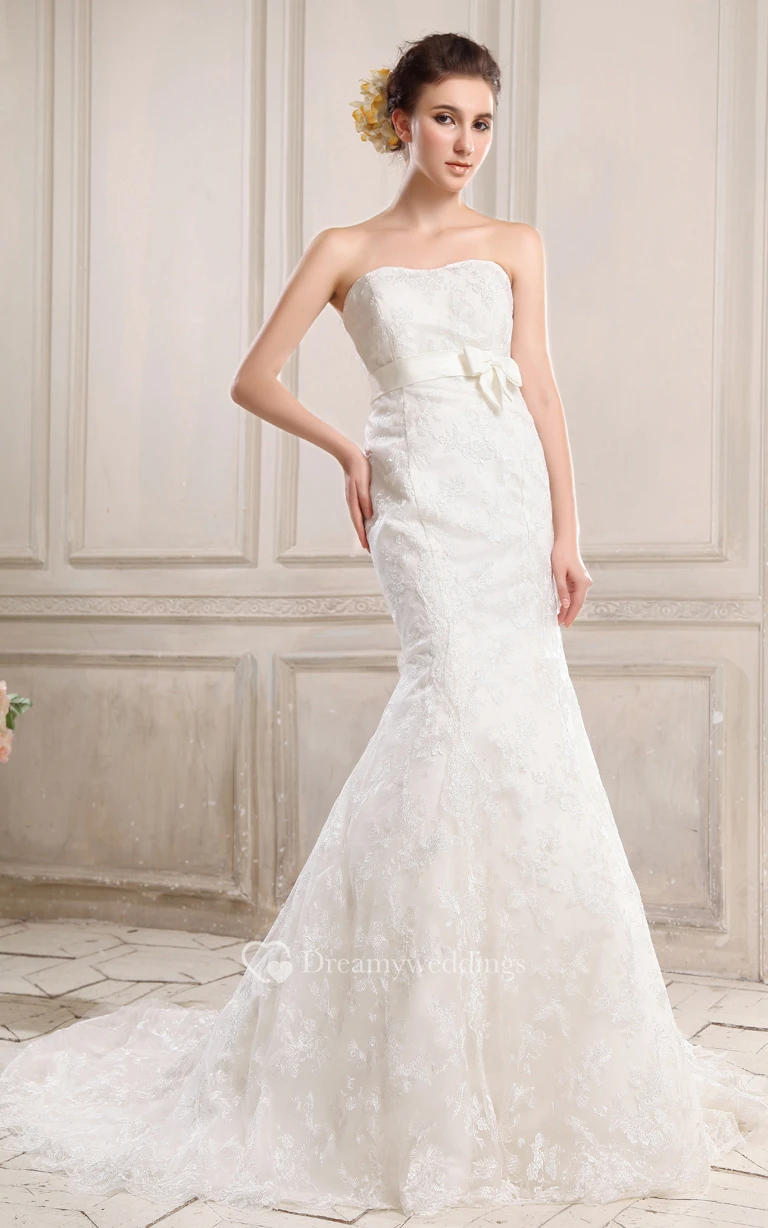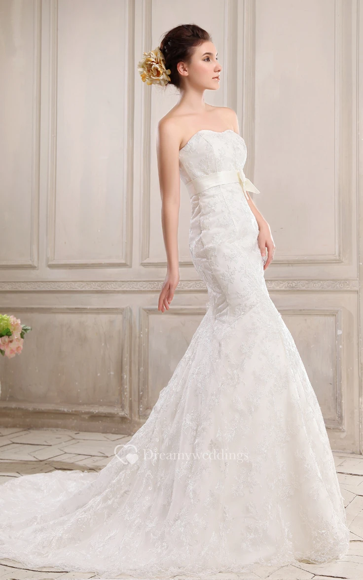 Strapless Laced Mermaid Dress With Bow and Sweep Train