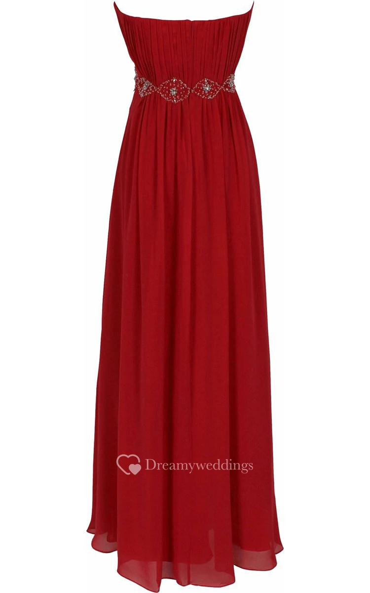 Strapless Long Chiffon Dress With Beaded Waist