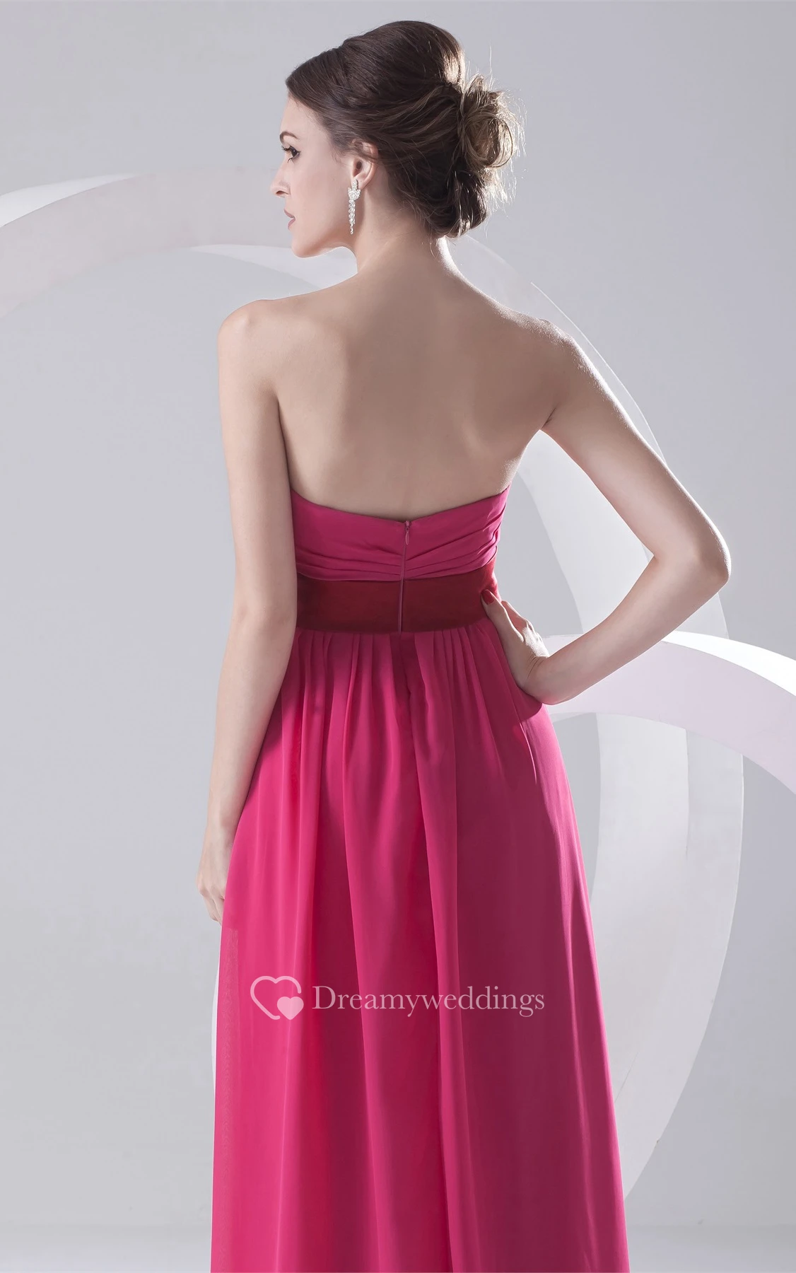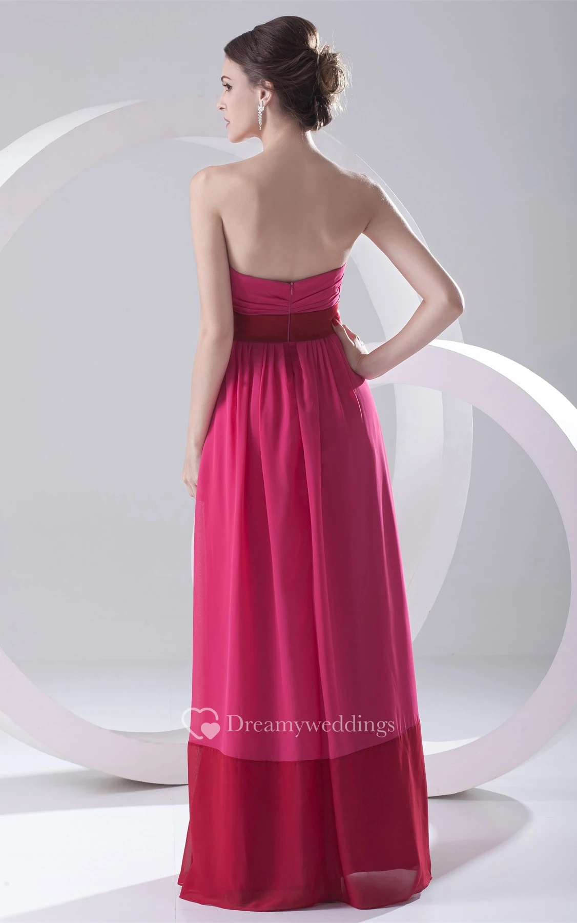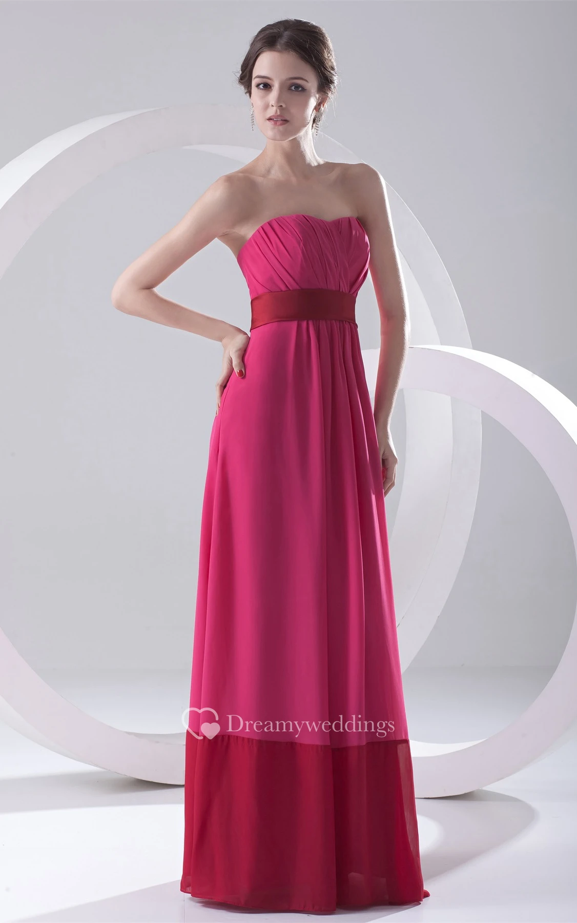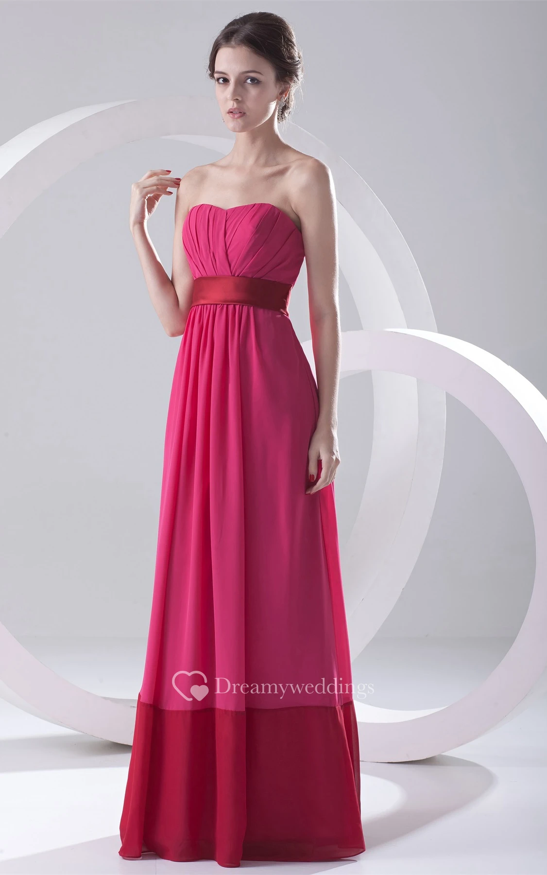 Strapless Long Chiffon Ruching and Dress With Pleats