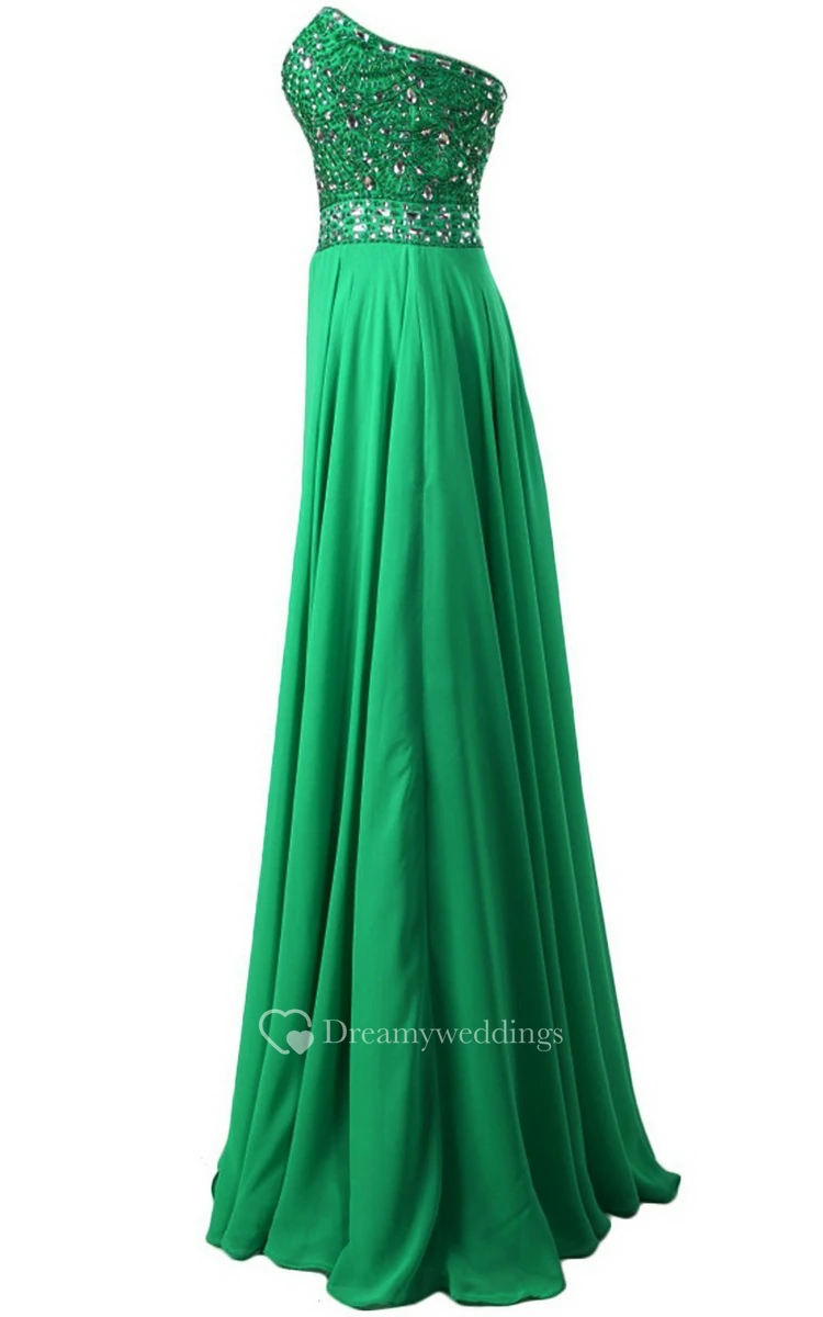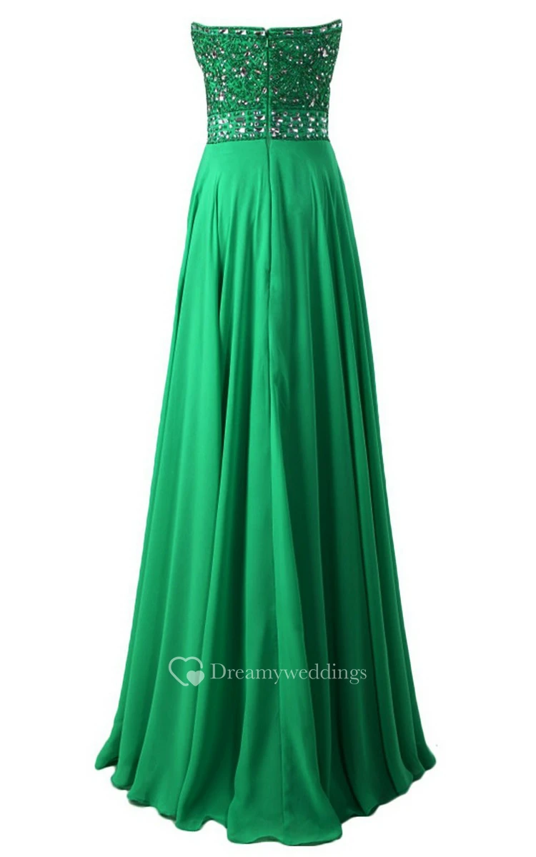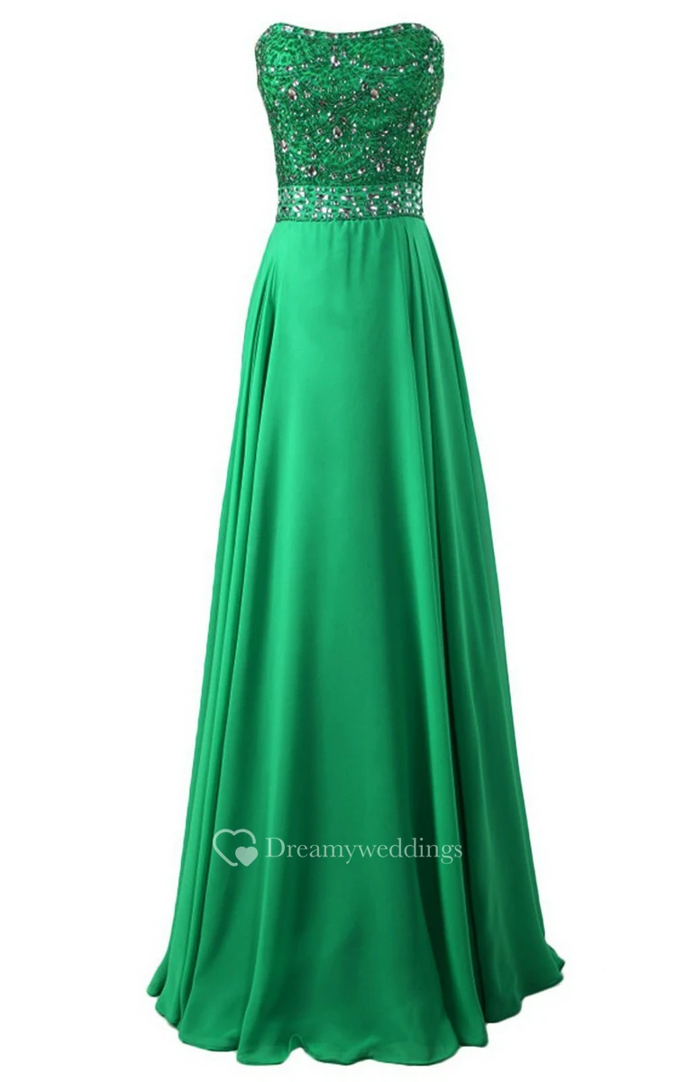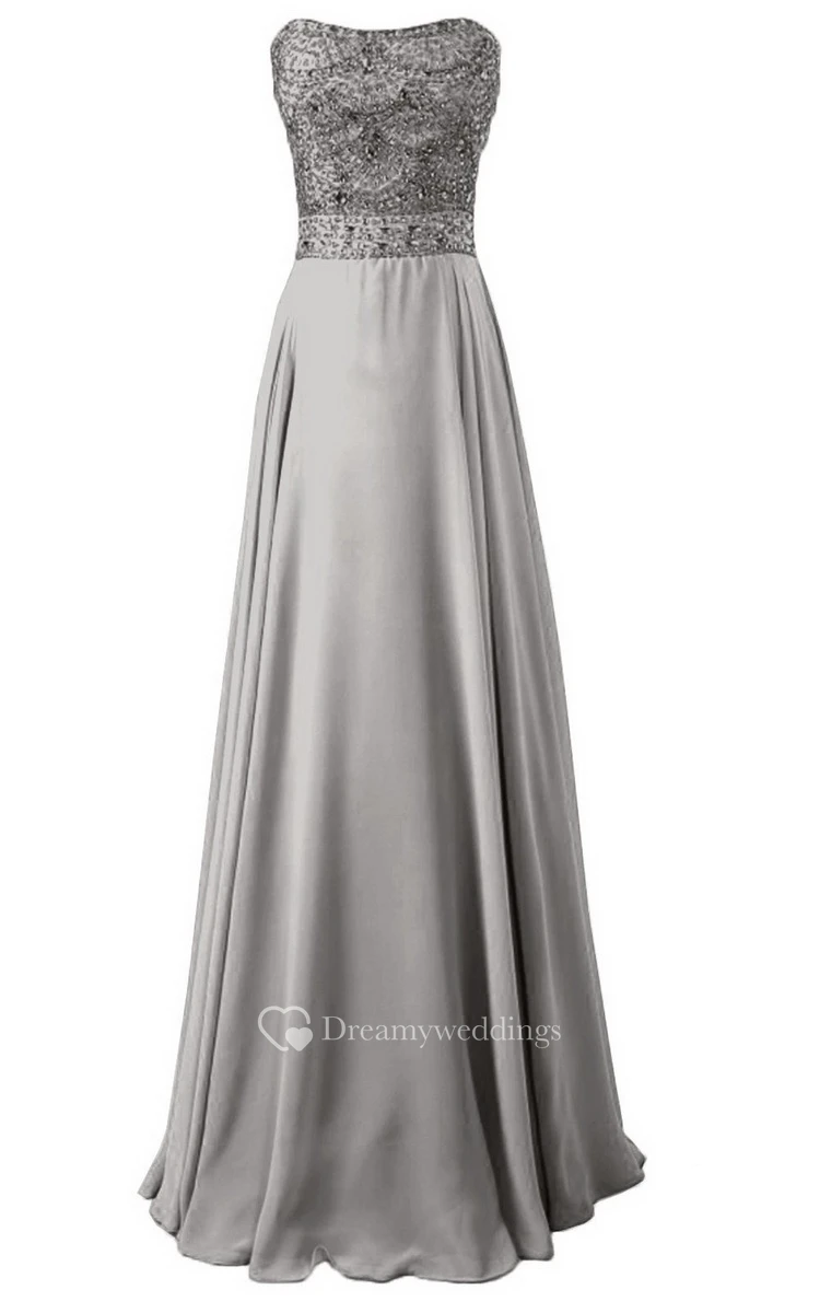 Strapless Long Satin Dress With Beaded Bodice