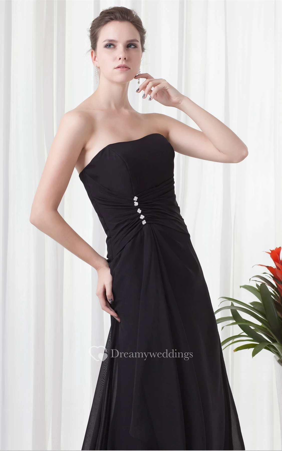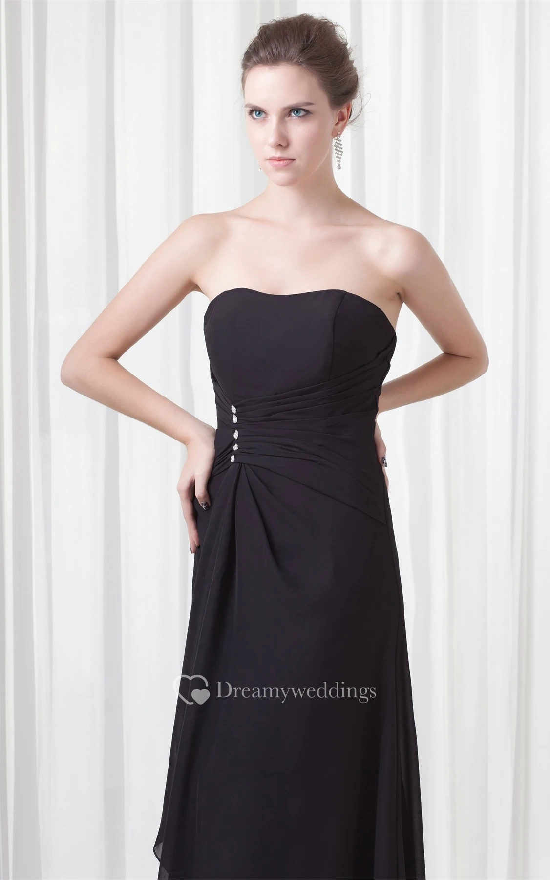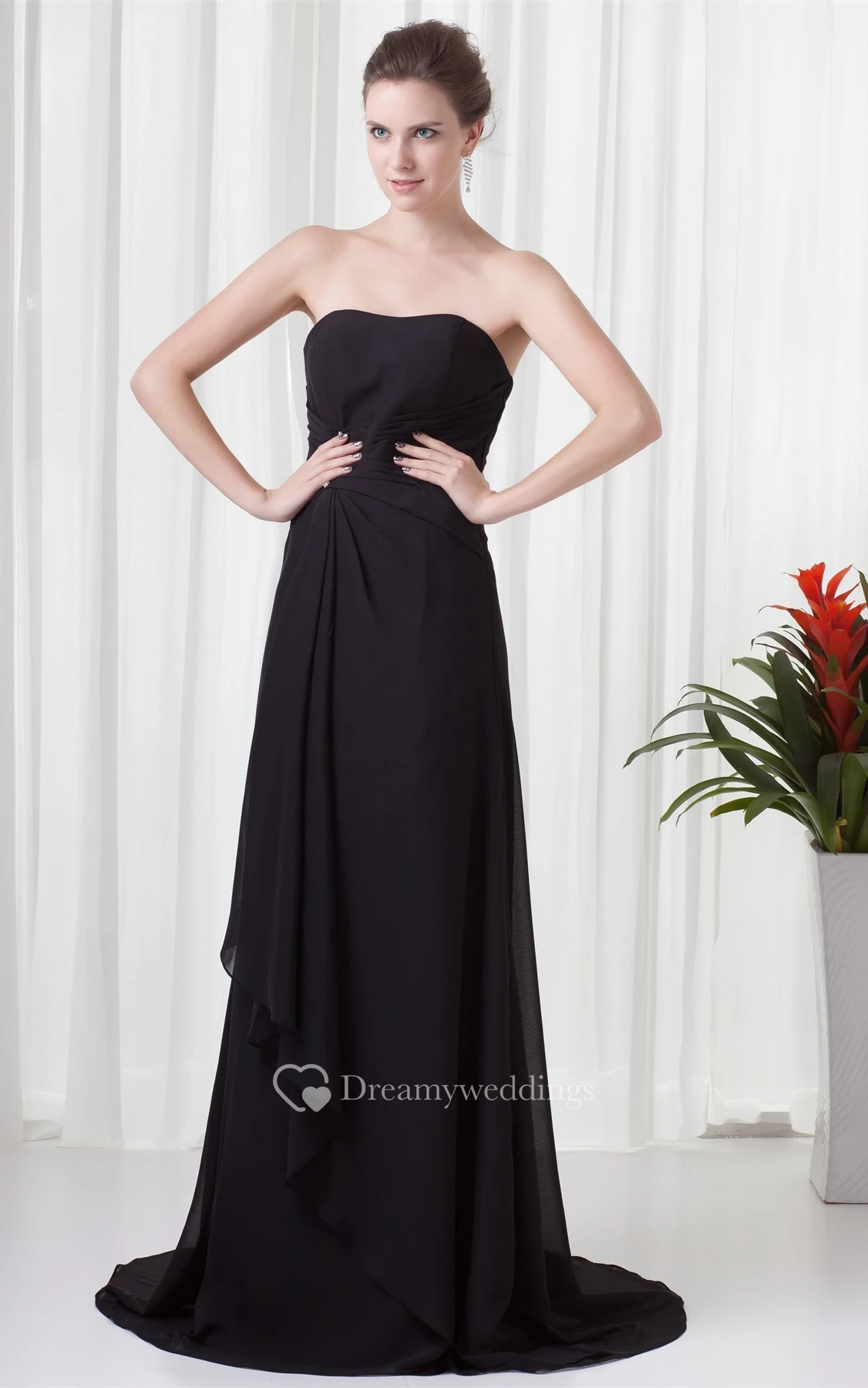 Strapless Maxi Chiffon Brush Train and Gown With Draping