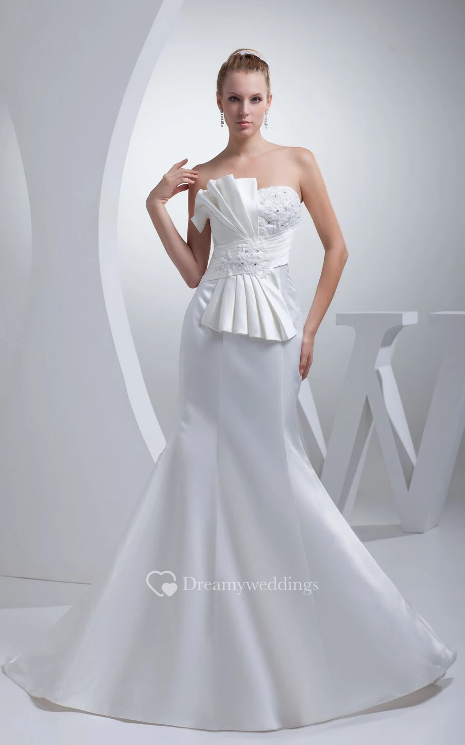 Strapless Mermaid Ruched Dress With Beading and Bow