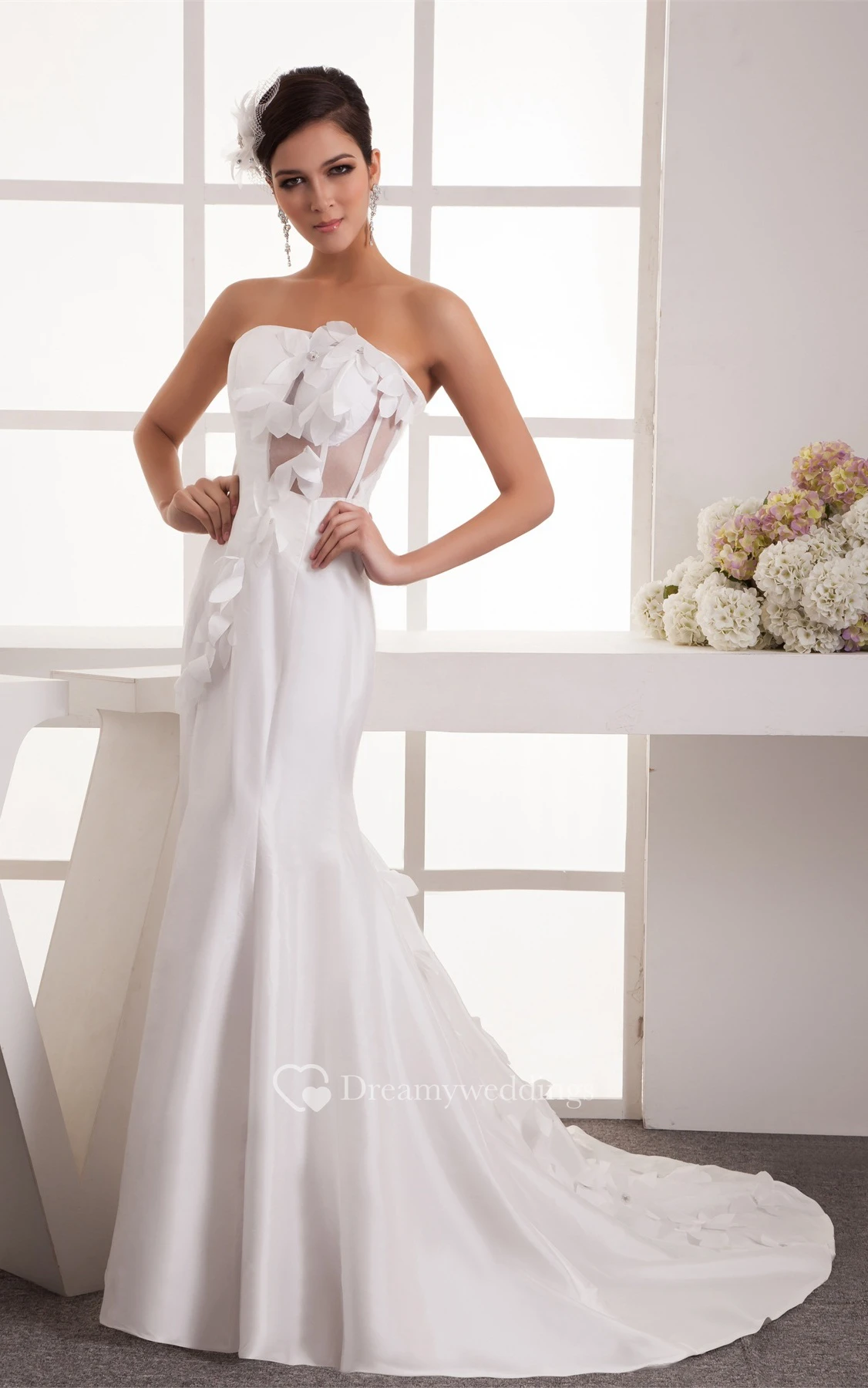Strapless Mermaid Satin Flower and Gown With Illusion