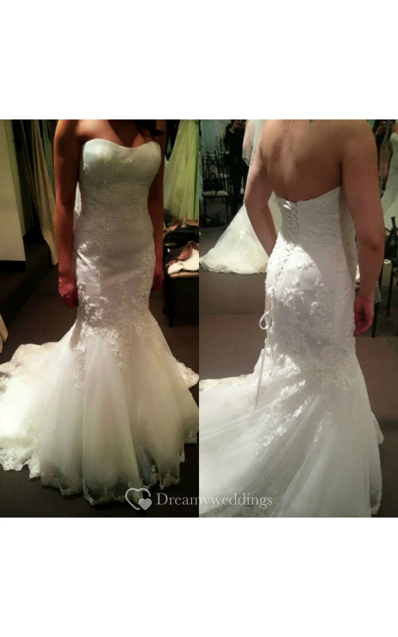Strapless Mermaid Tulle Gown With Appliques and Lace-up
