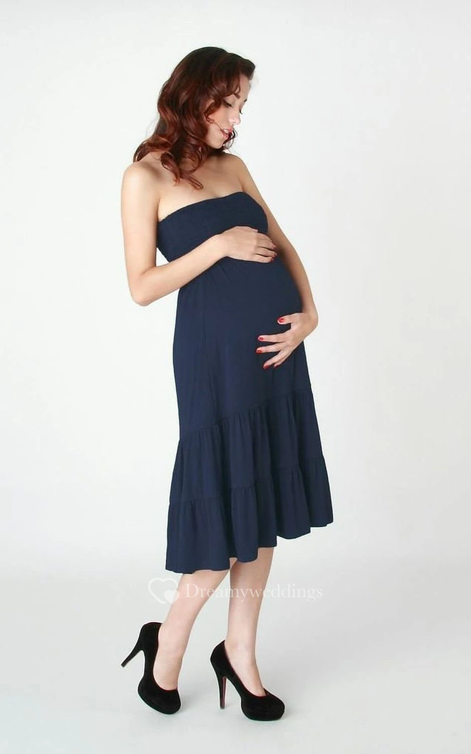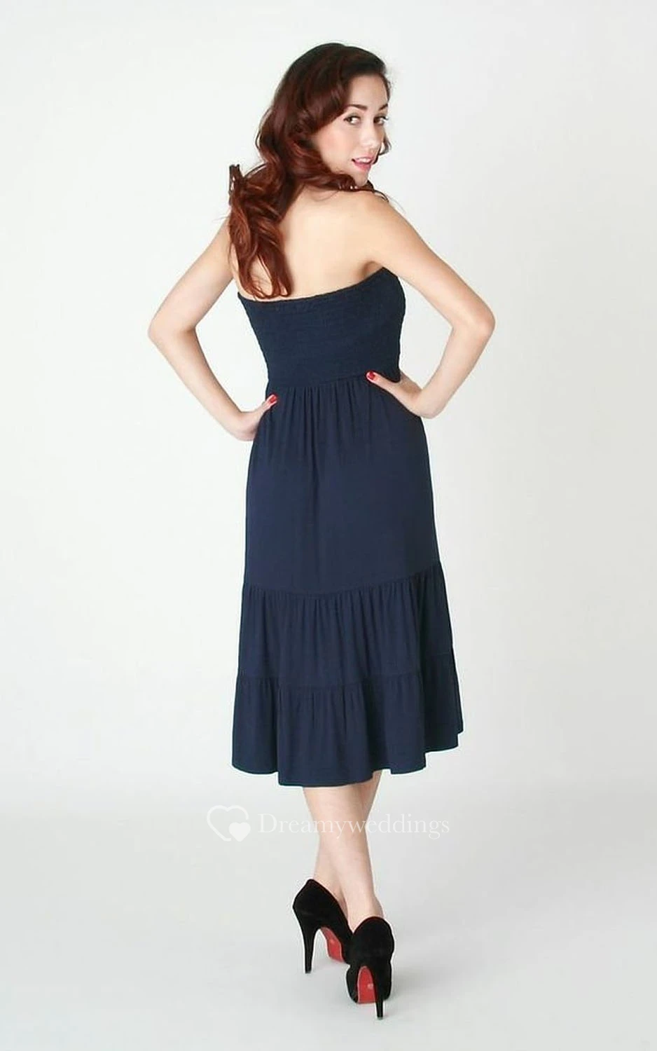 Strapless Midi-length Pleated Ruffled Satin Dress