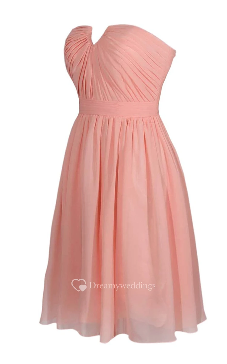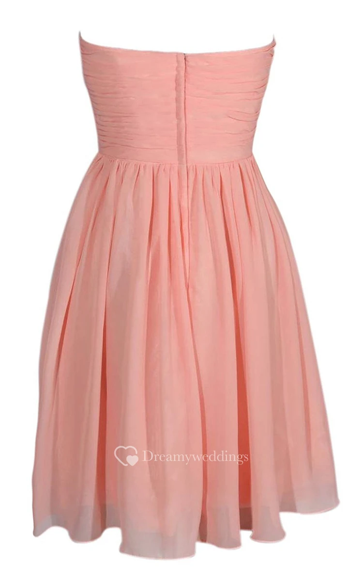 Strapless Notched Chiffon Short Dress With Band