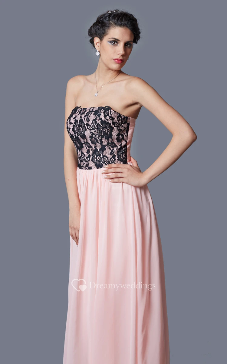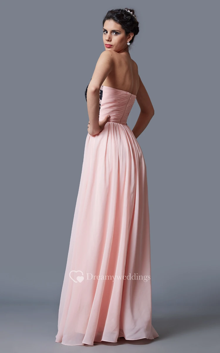 Strapless Pleated A-line Chiffon Dress With Floral Appliques