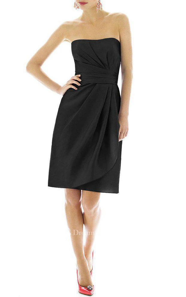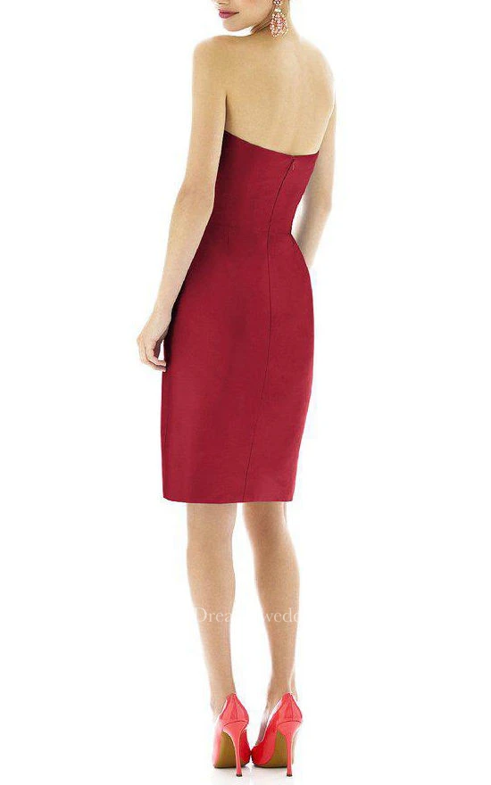 Strapless Pleated Knee-length Satin Bridesmaid Dress