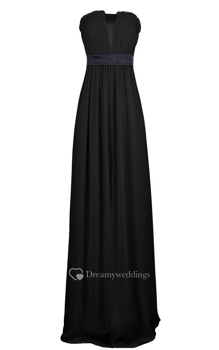 Strapless Pleated Long Wedding Dress With Chiffon Belt