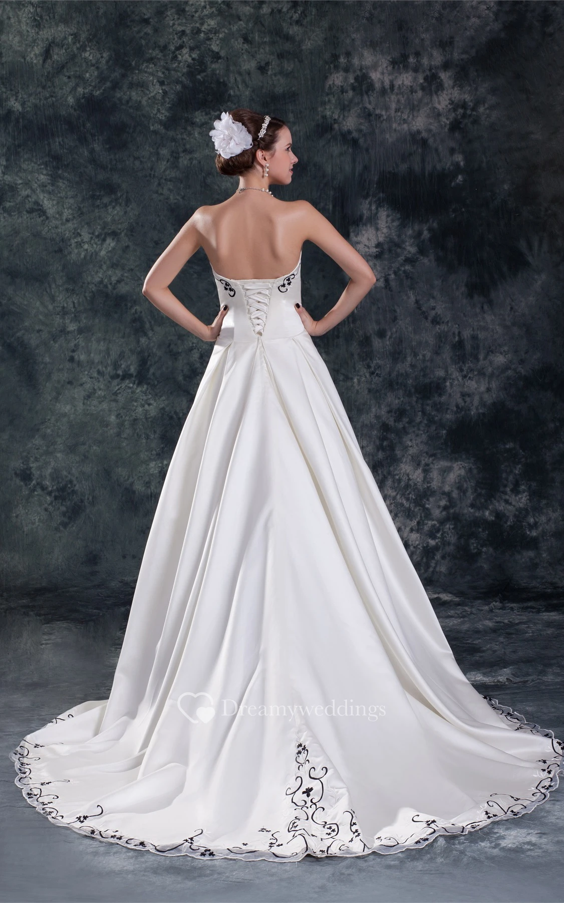 Strapless Pleated Satin Ball-Gown With Embroideries