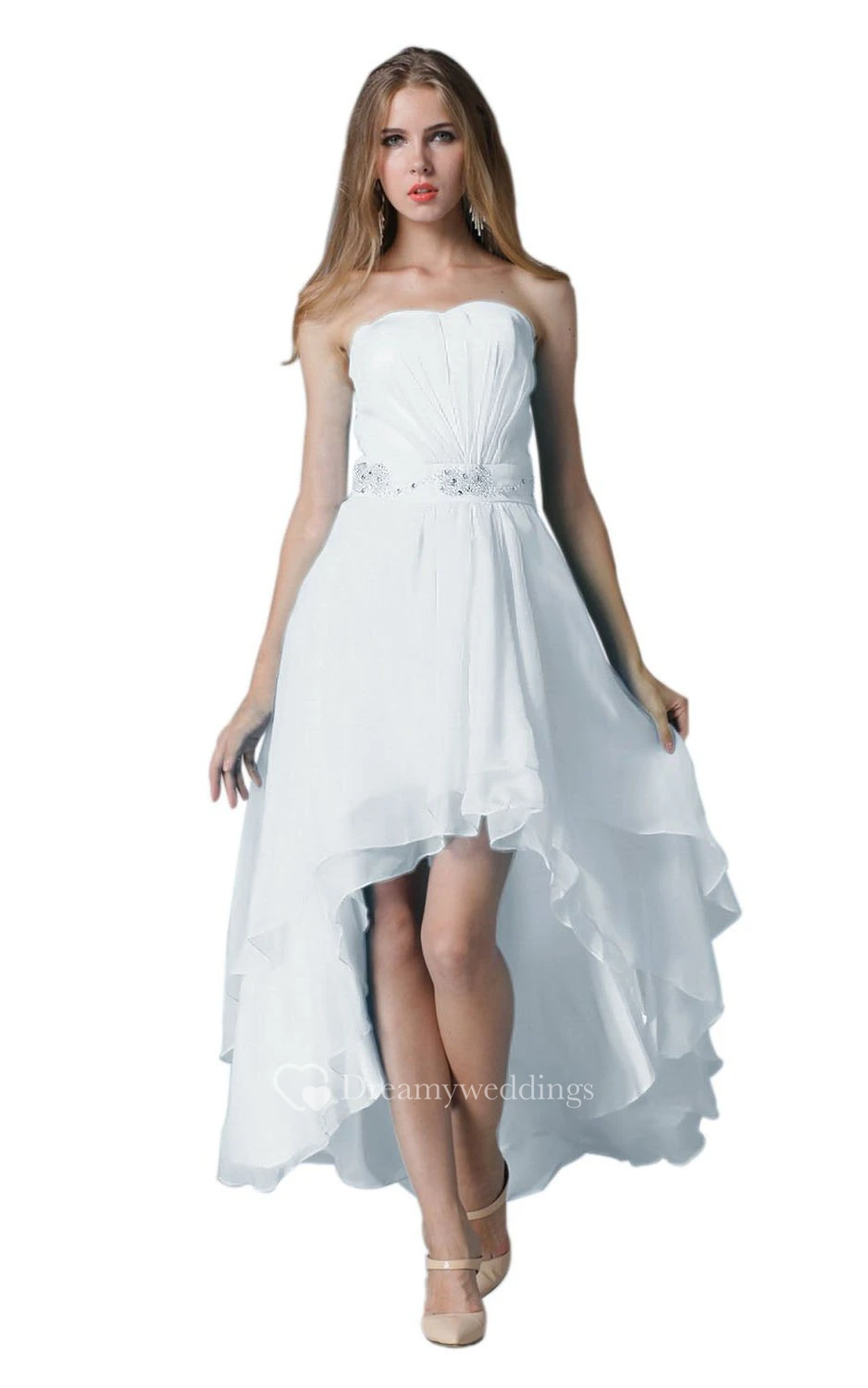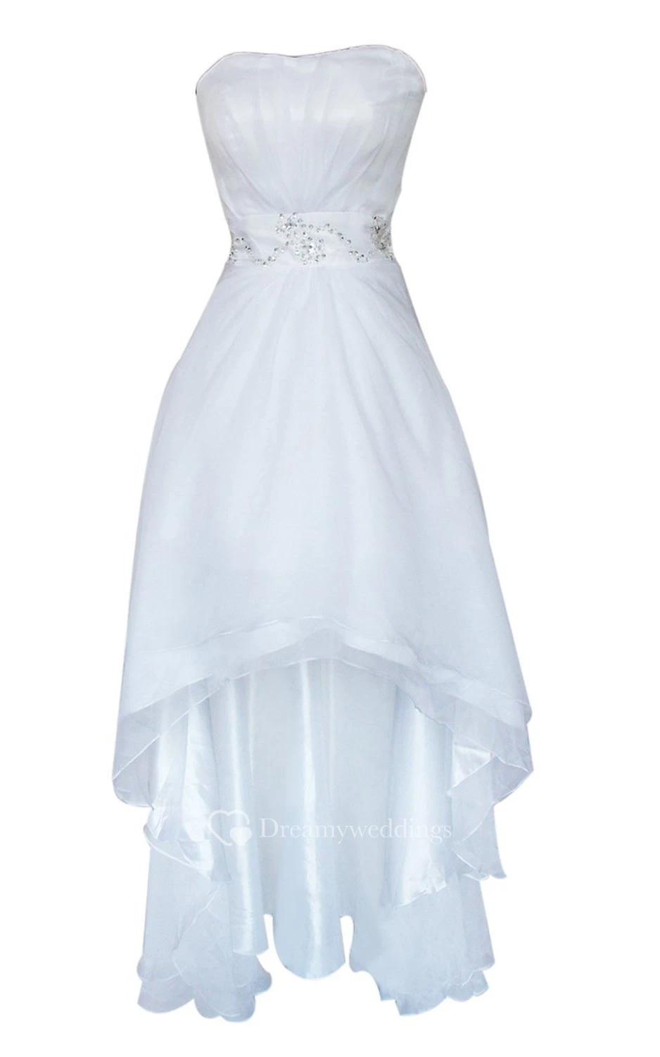 Strapless Ruched Beaded High-low Layered Chiffon Dress