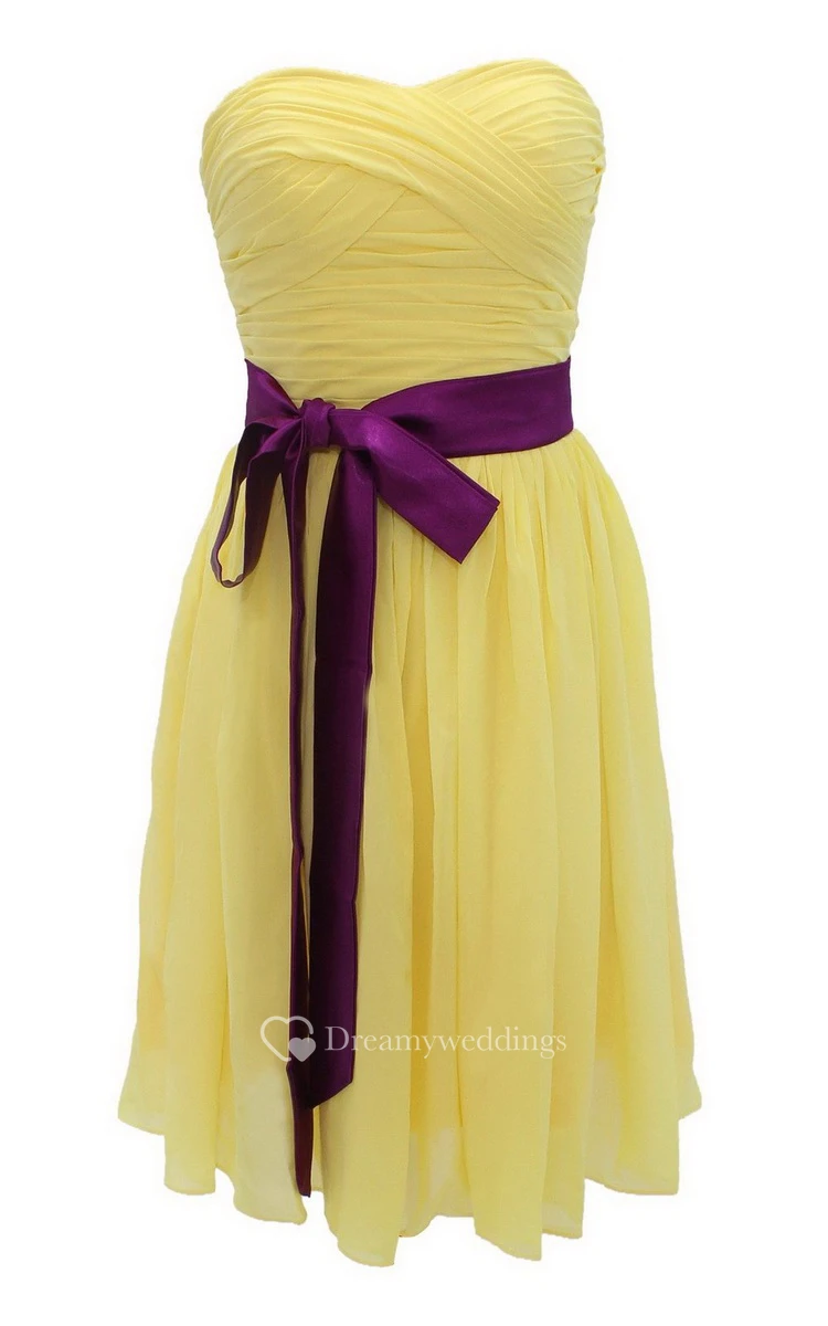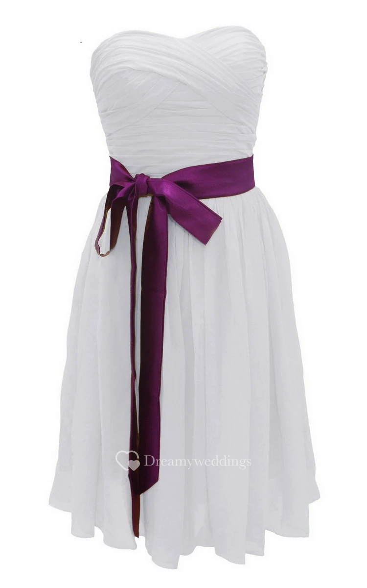 Strapless Ruched Dress WIth Satin Sash and Drapping