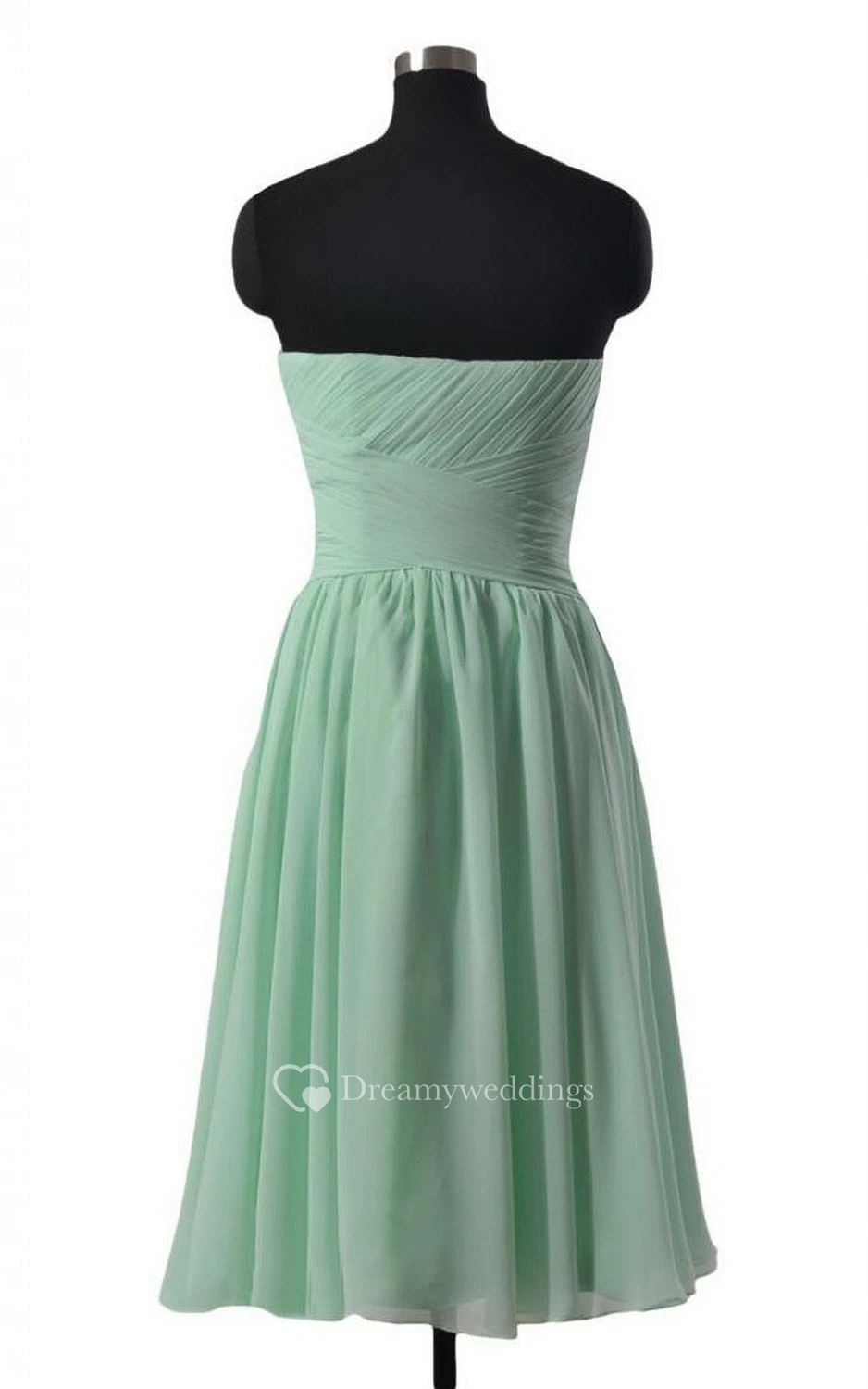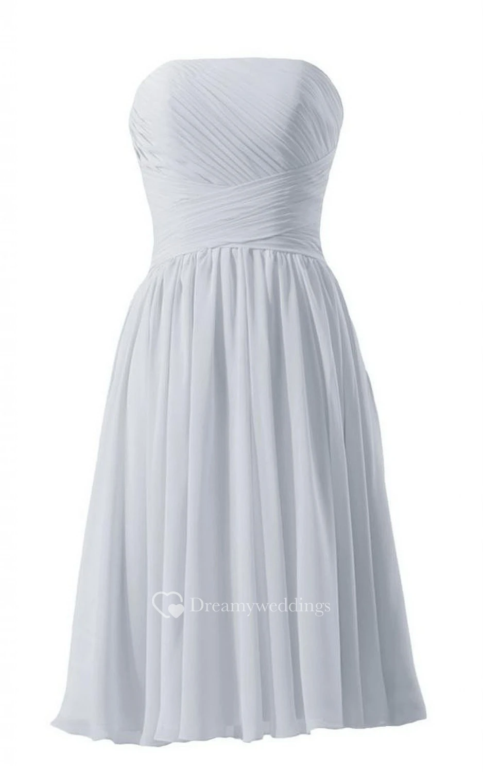 Strapless Ruched Knee-length Pleated Chiffon Dress