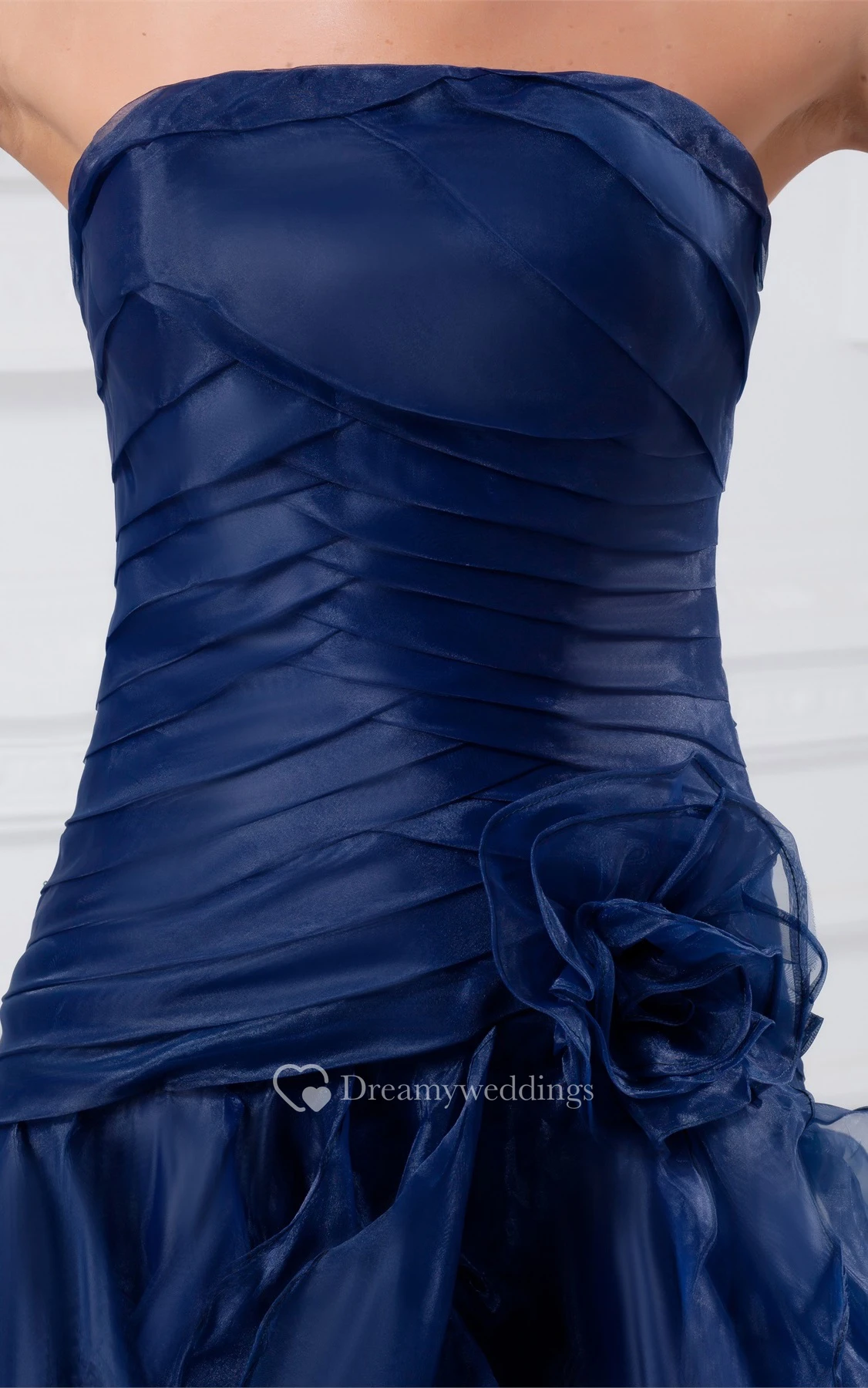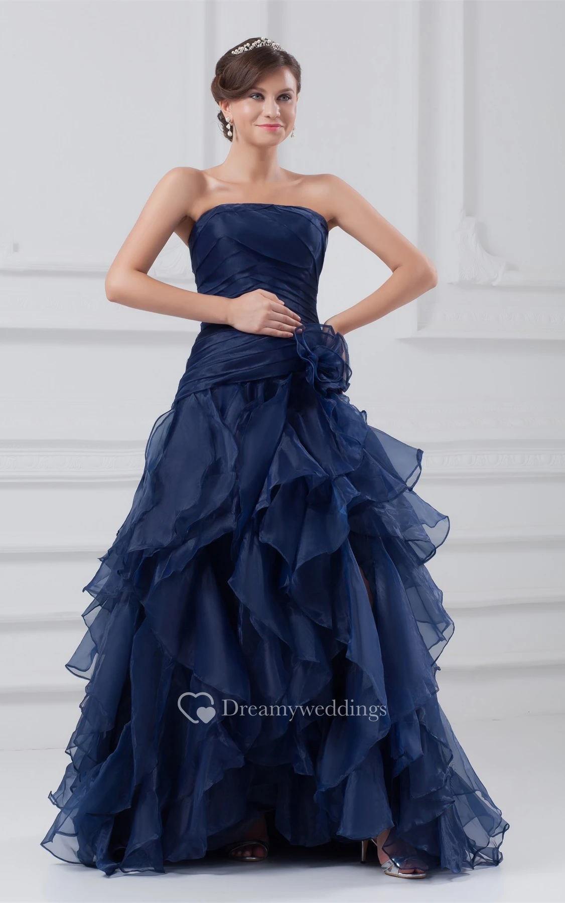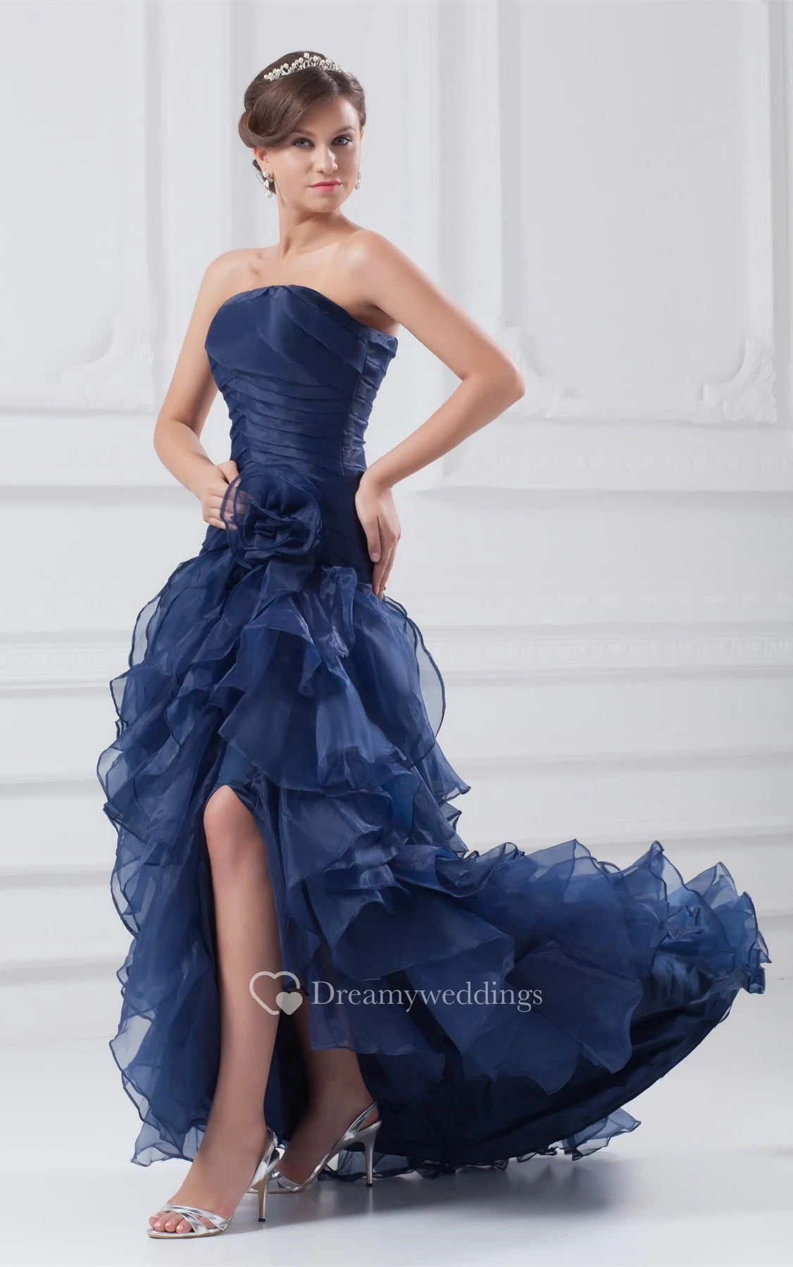 Strapless Ruffled Front-Split Sweep Train and Dress With Flower