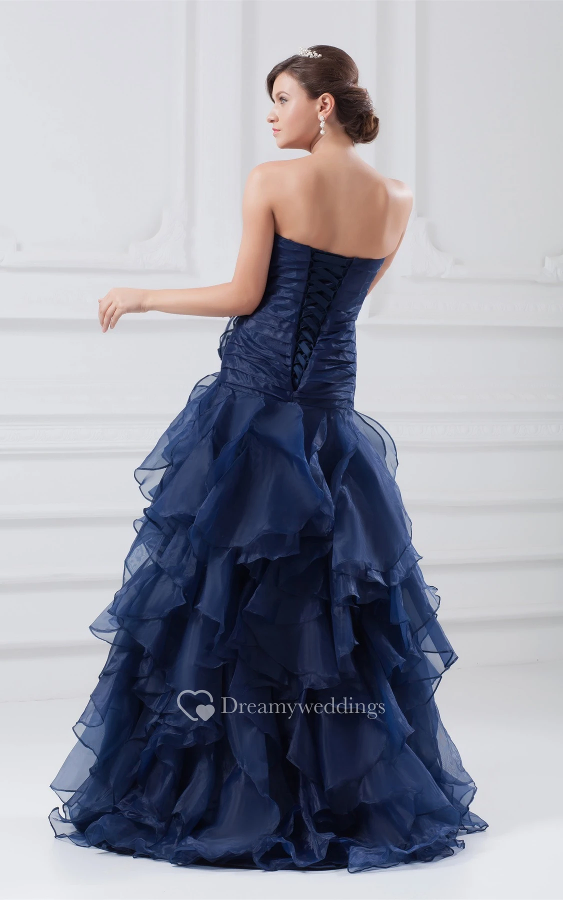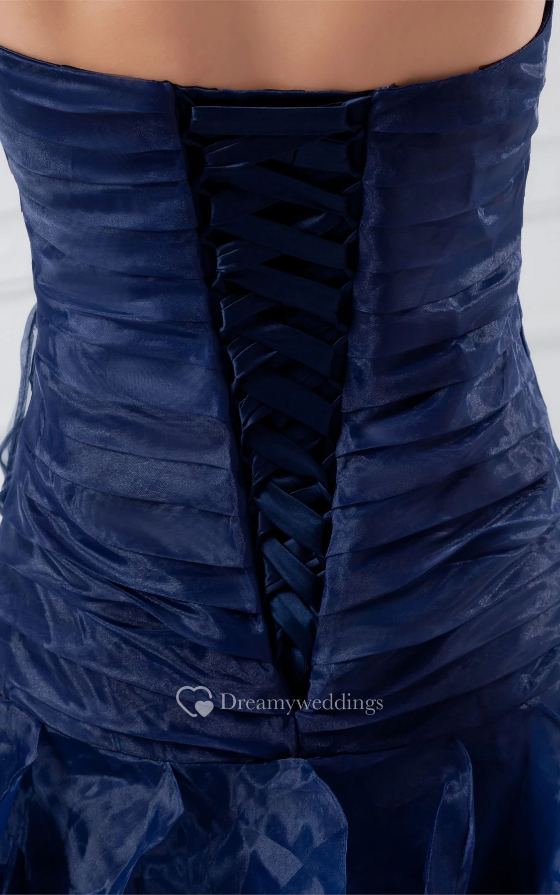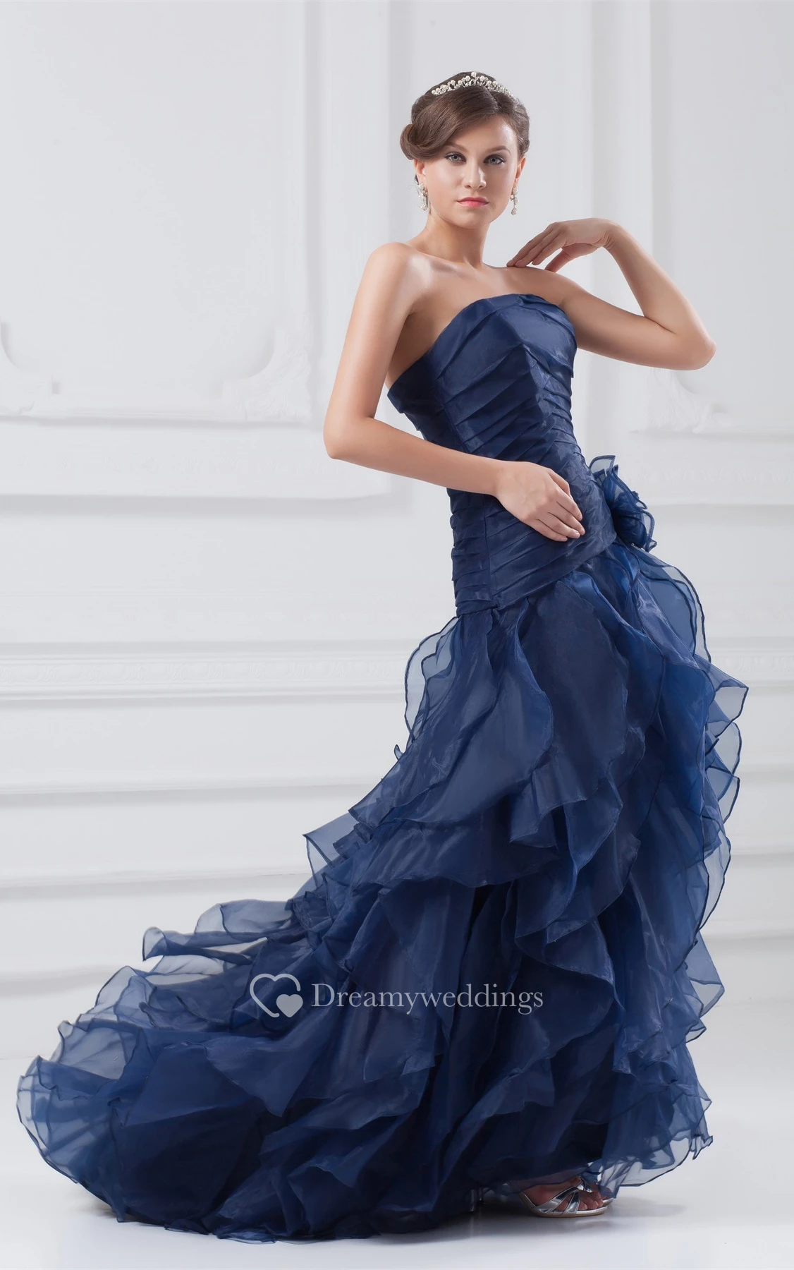 Strapless Ruffled Front-Split Sweep Train and Dress With Flower