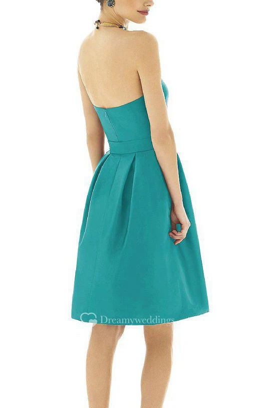 Strapless Satin Pleated Short Bridesmaid Dress