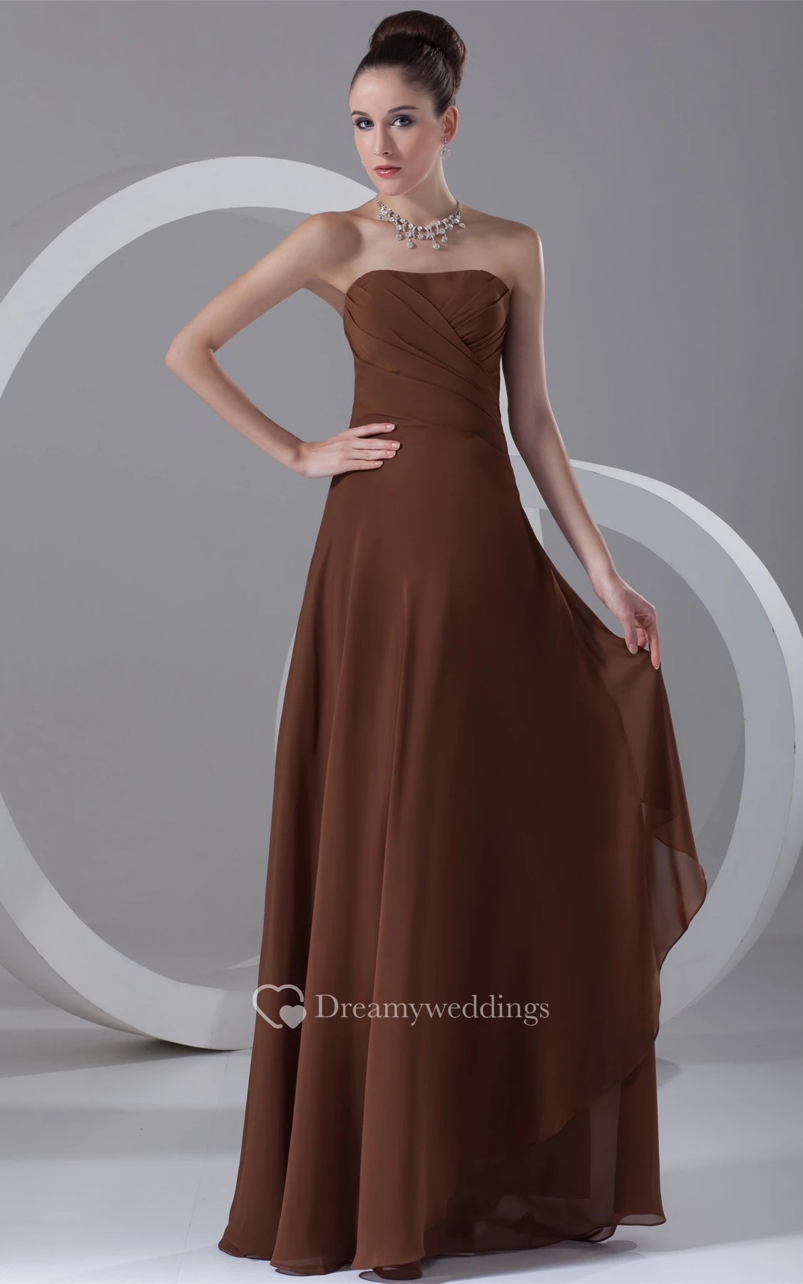 Strapless Sheath Chiffon Corset Back and Dress With Ruching