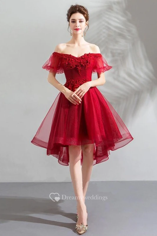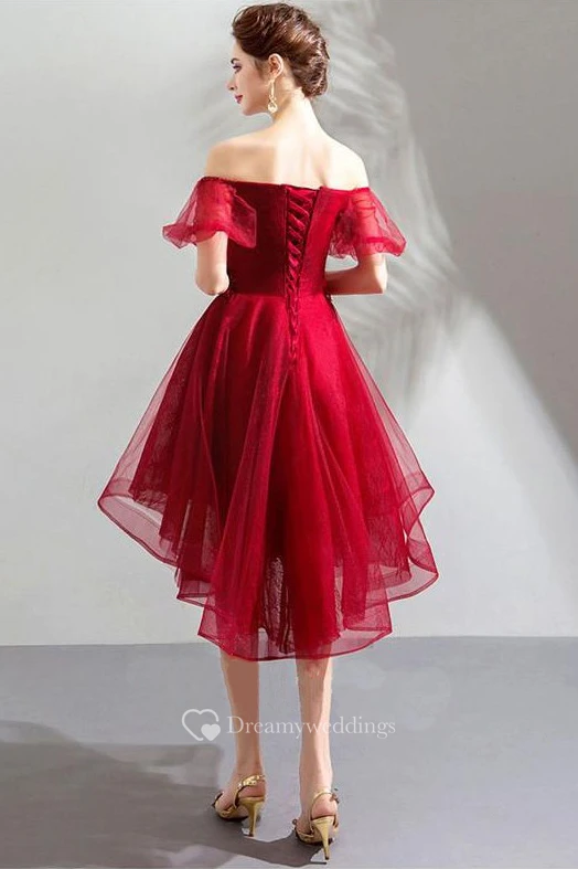 Strapless Short Sleeve High-Low Dress with Corset Back