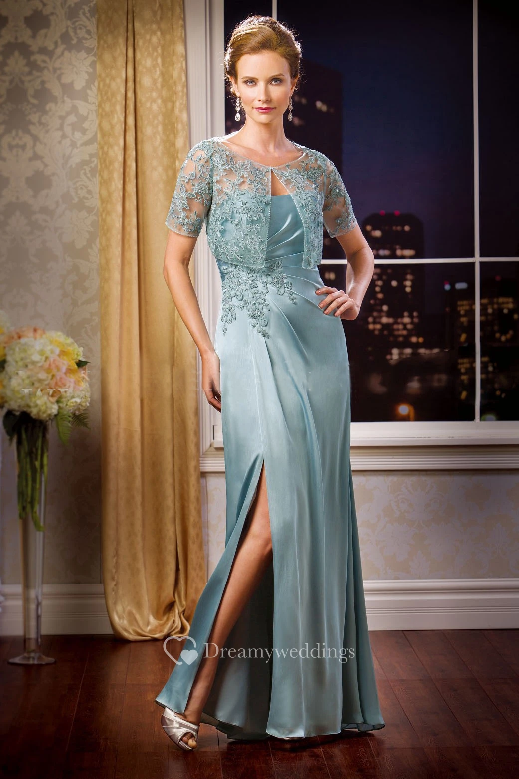 Strapless Side Silted Mother Of The Bride Dress With Detachable Short-Sleeved Jacket Style