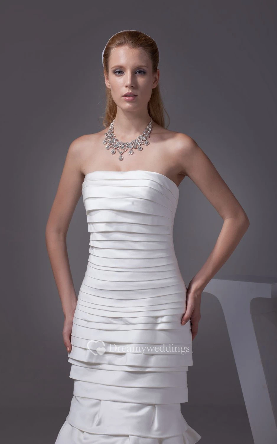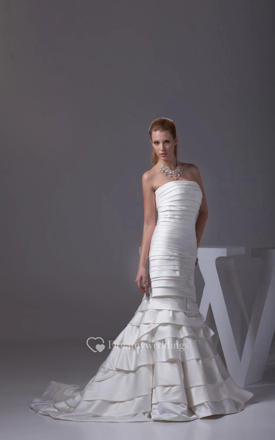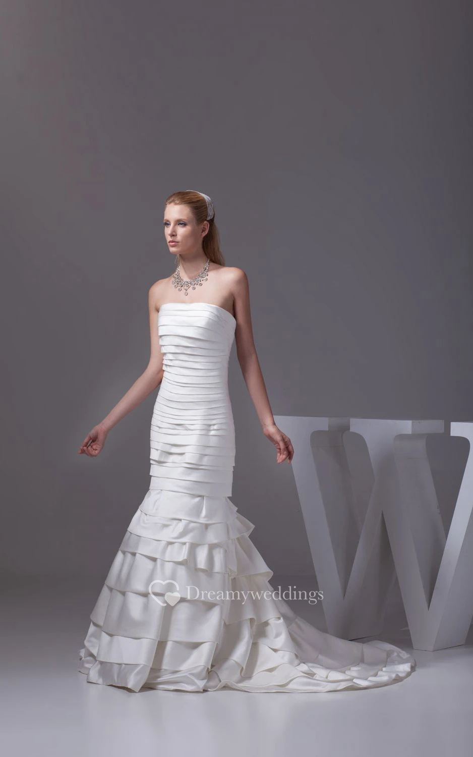 Strapless Siren Style Dress With Tiers and Brush Train