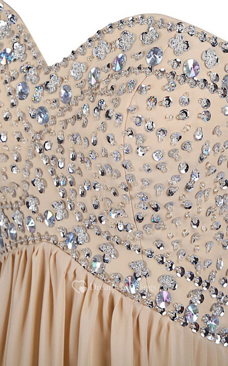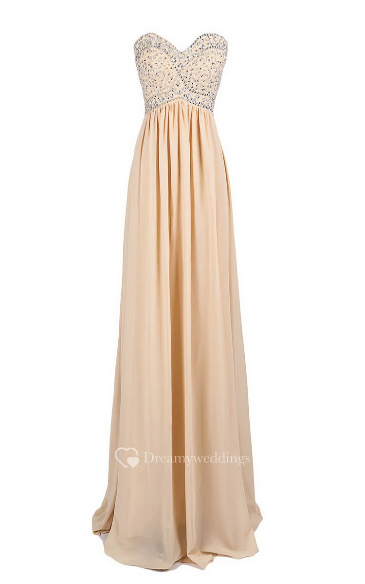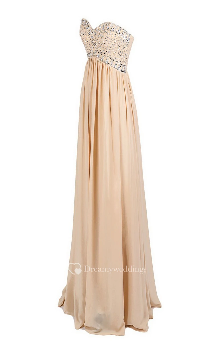 Strapless Sweetheart Rhinestoned A-line Gown With Zipper Back