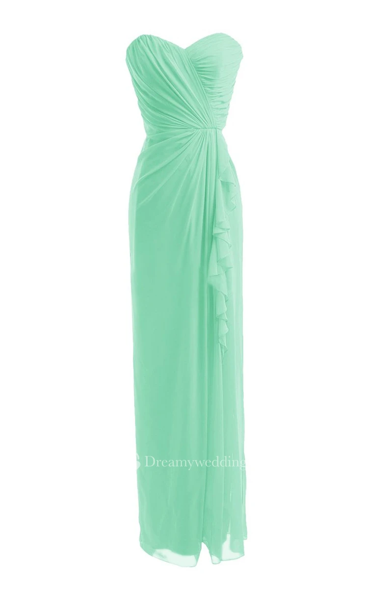 Strapless Sweetheart Side-drappping Chiffon Sheath Gown