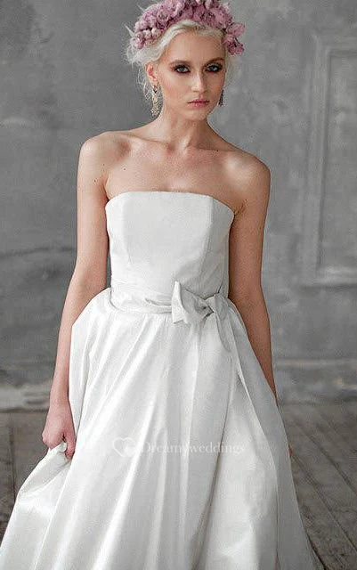 Strapless Taffeta A-Line Bridal Gown With Bow Sash