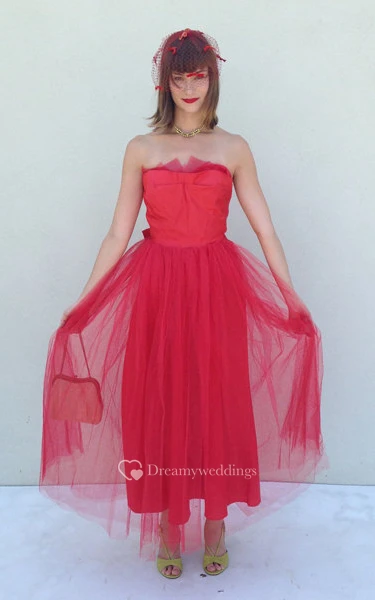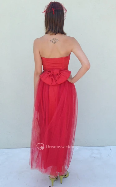 Strapless Tea-length A-line Tulle Dress With Bow