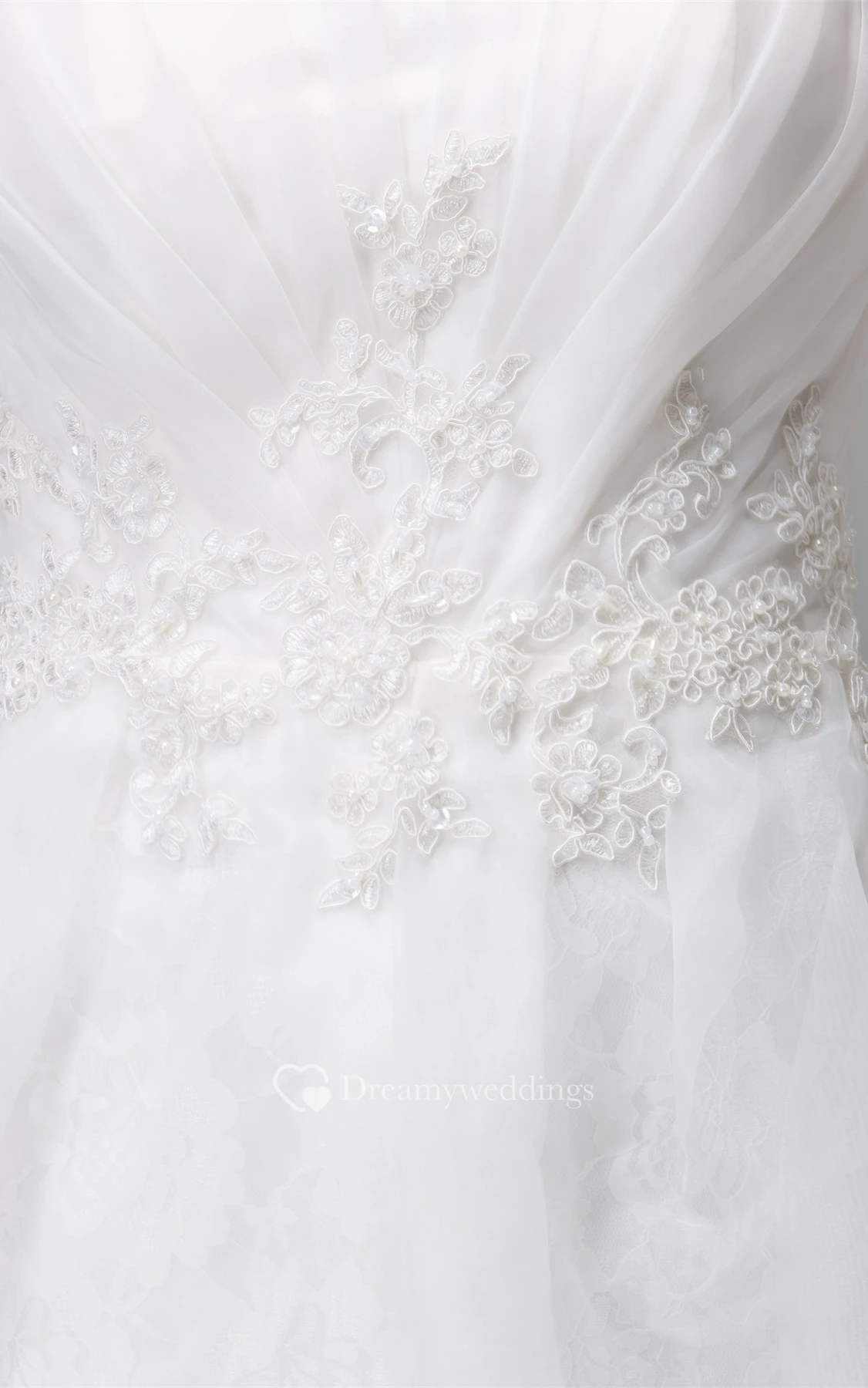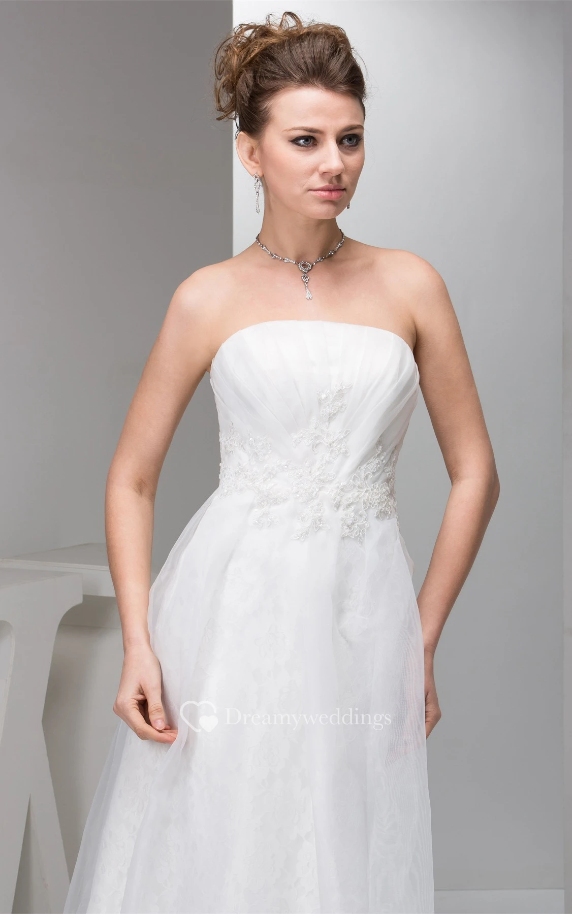 Strapless Tulle A-Line Chiffon Gown With Lace