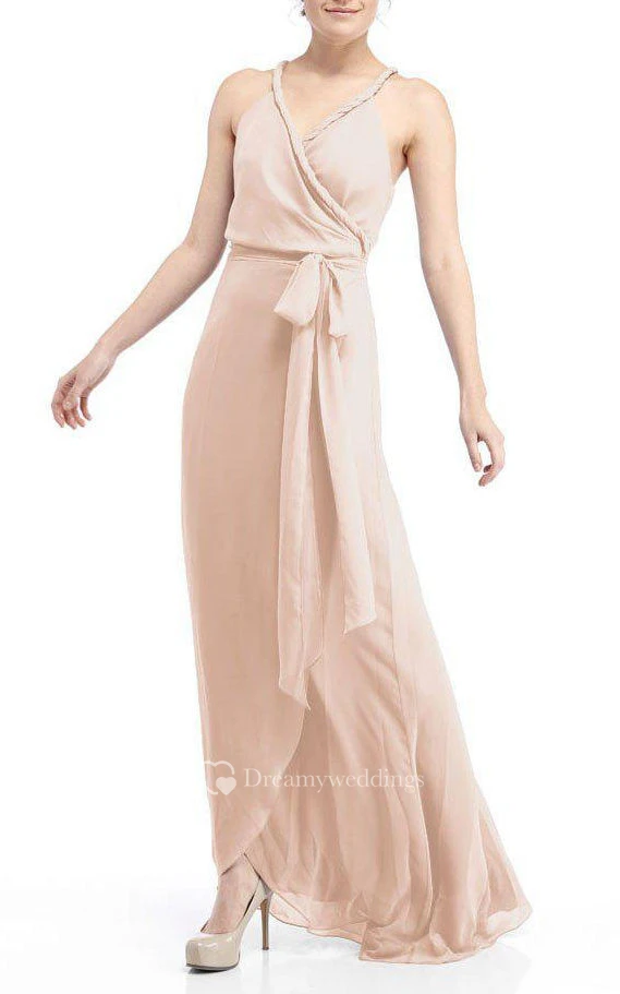 Strapped Chiffon Bridesmaid Dress with Sash