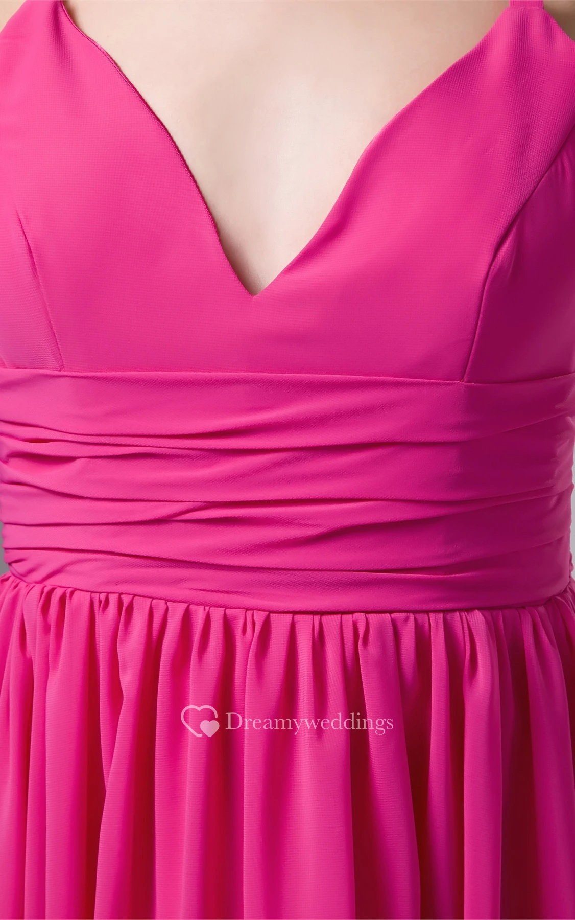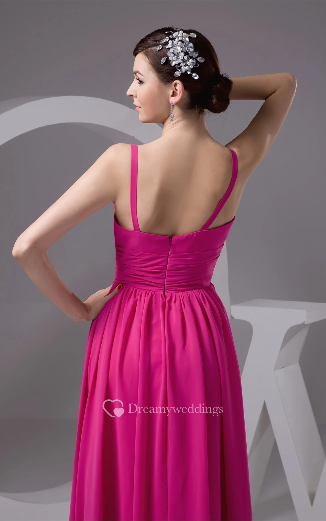 Strapped Chiffon Floor-Length Plunged Gown With Pleats