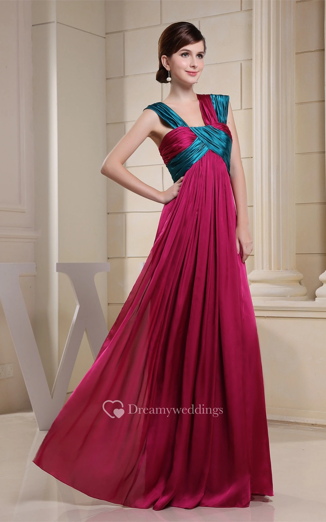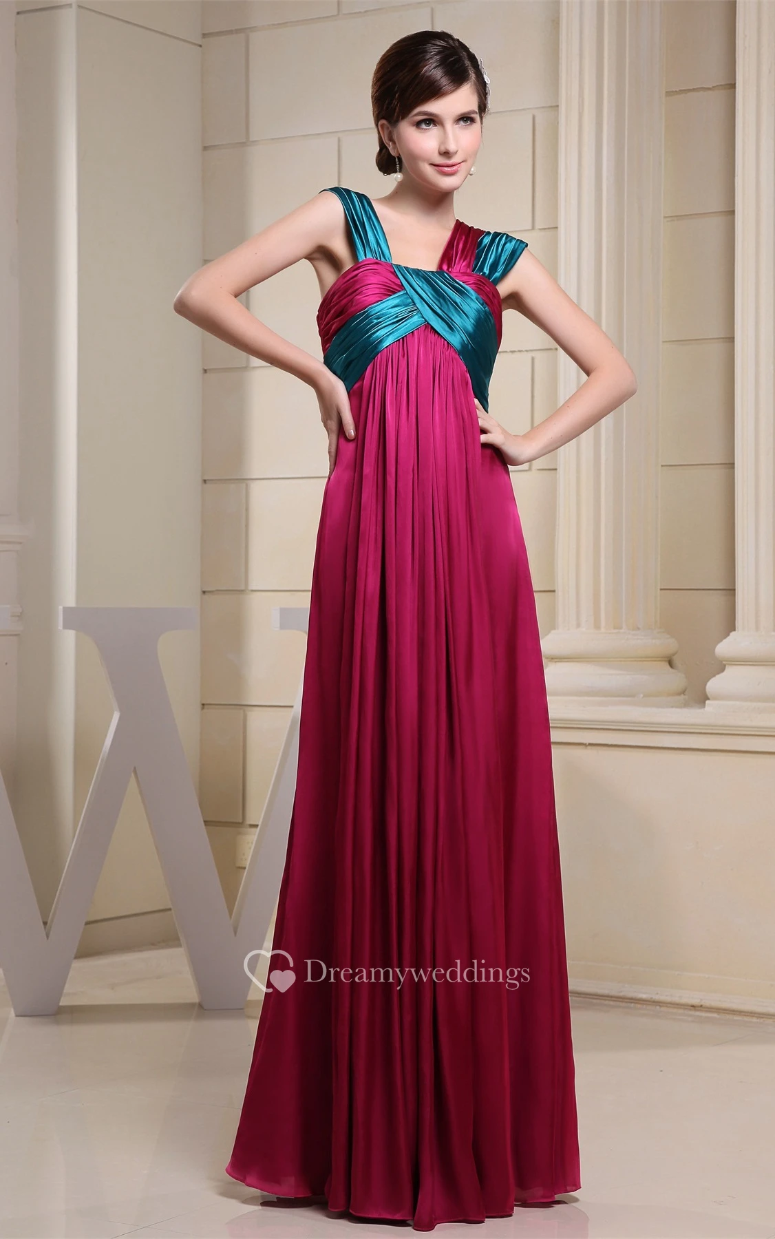 Strapped Chiffon Maxi Empire Dress With Pleats
