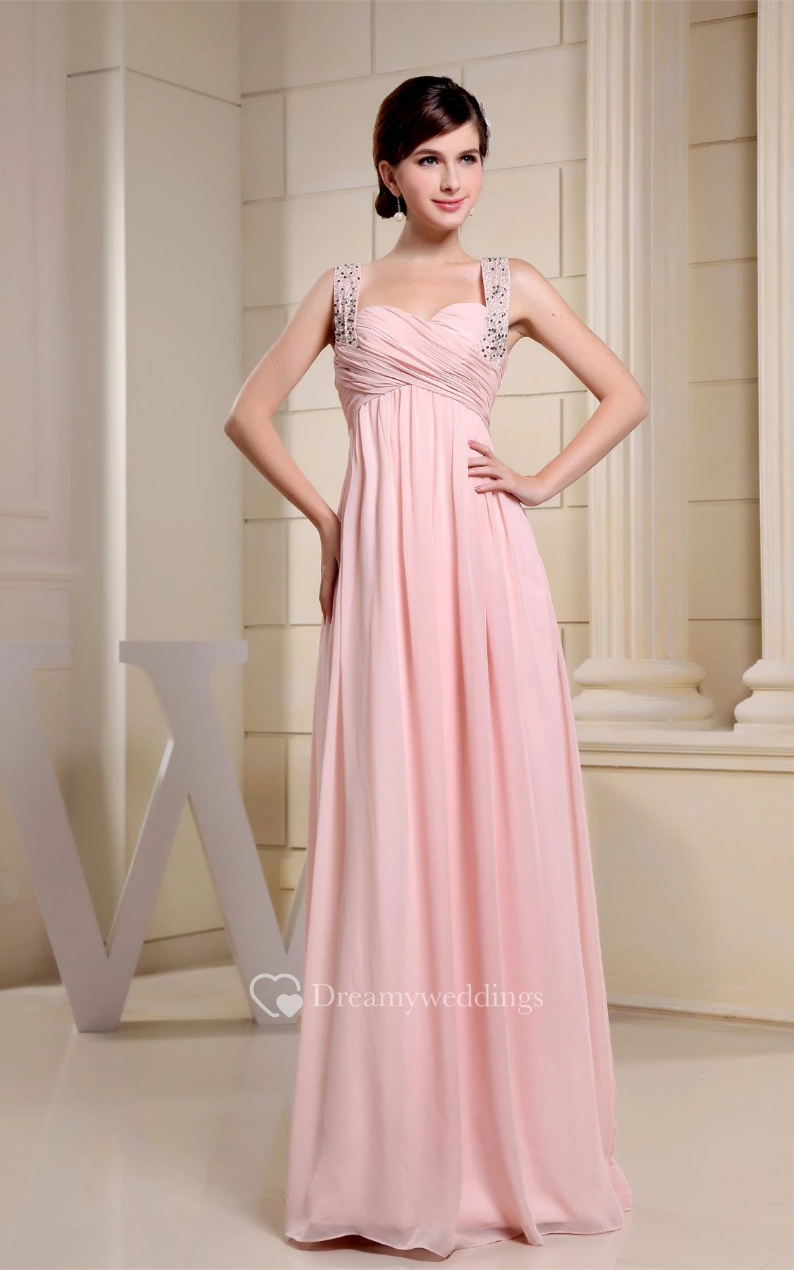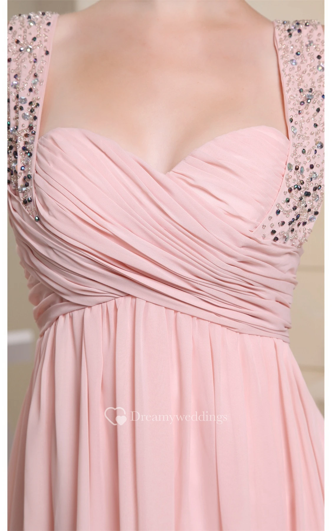 Strapped Empire Chiffon Crystal Detailing and Dress With Pleats