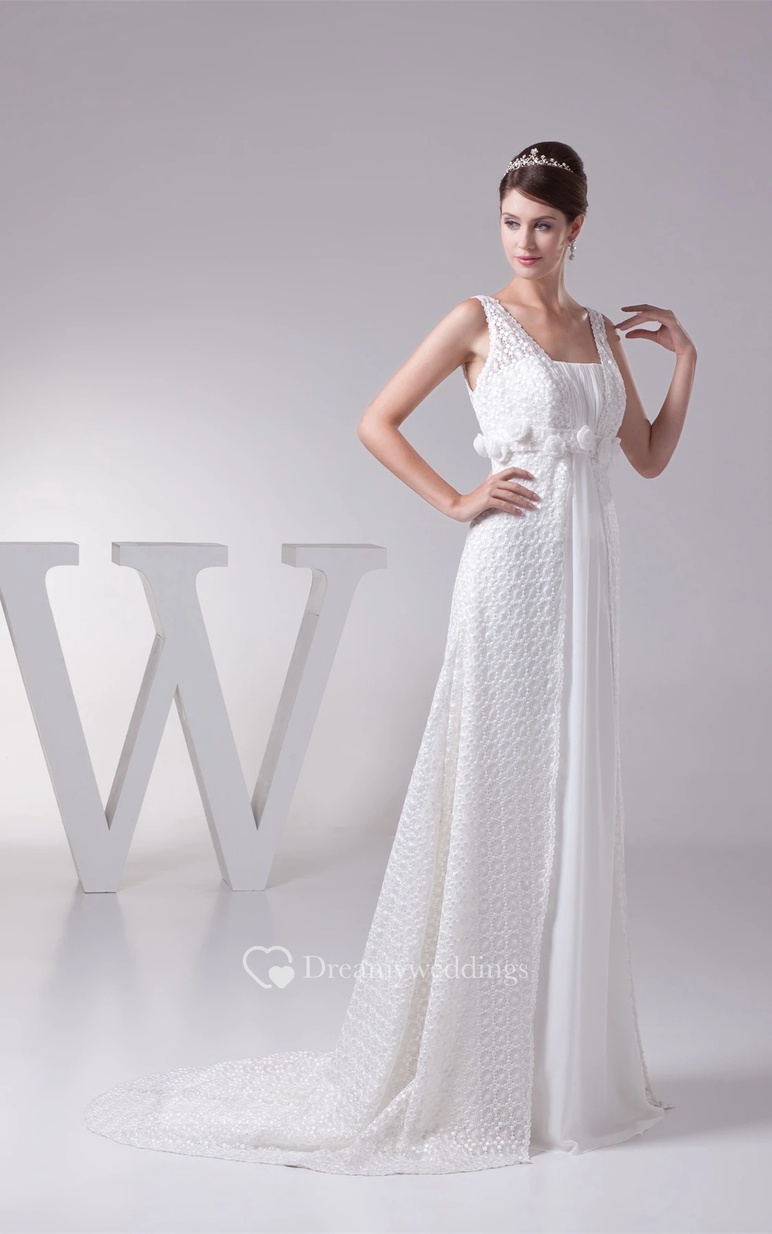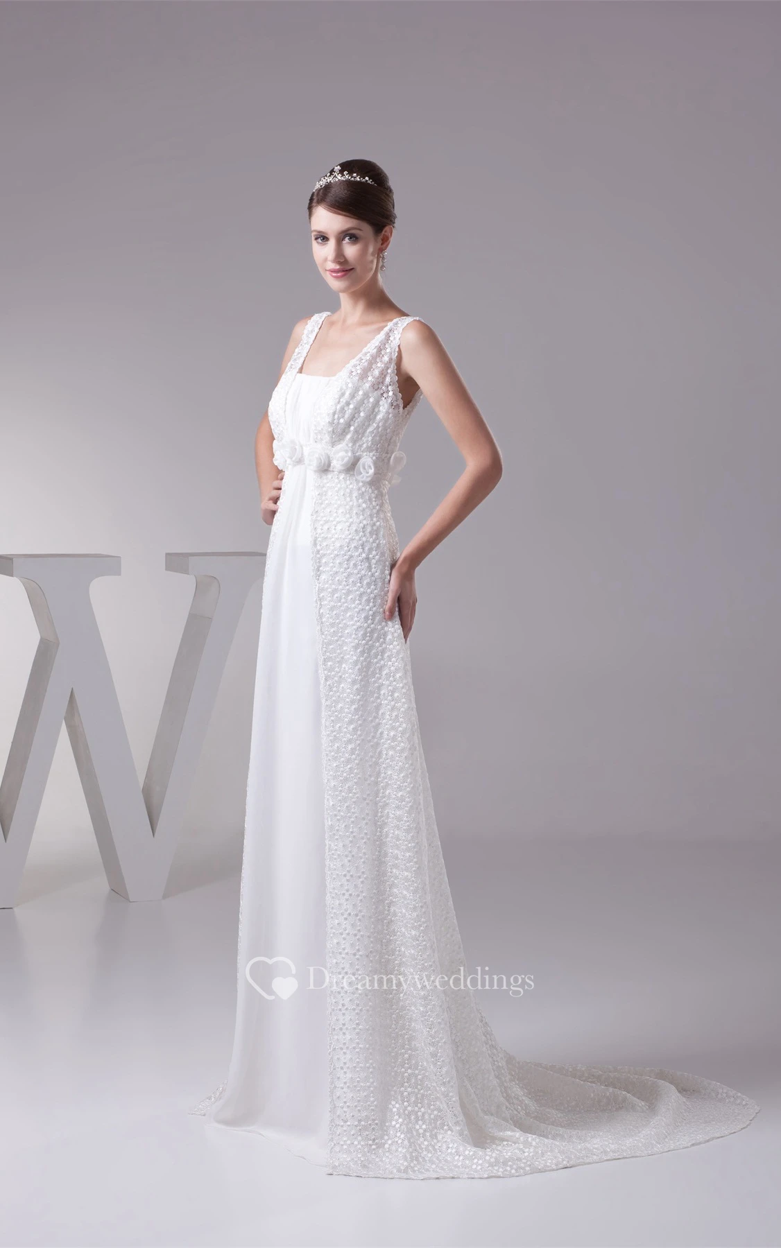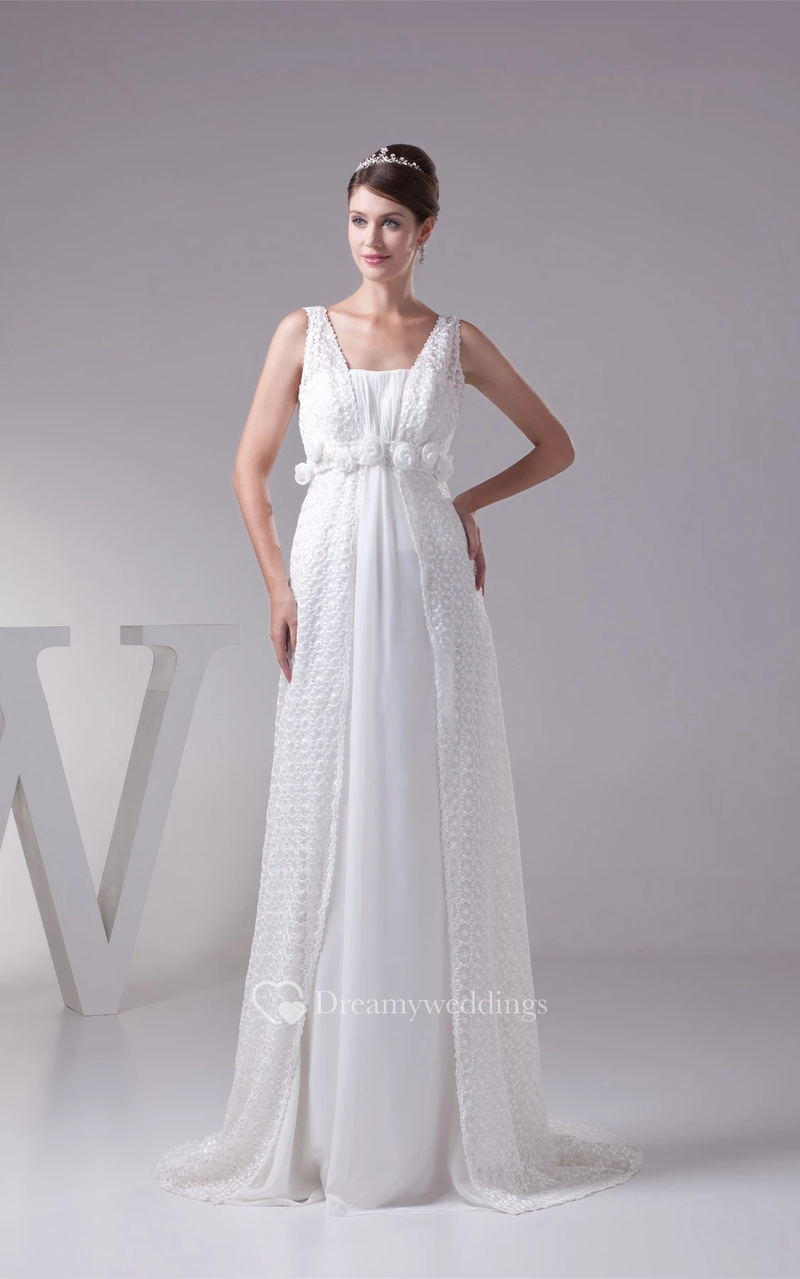 Strapped Empire Chiffon Floral Waist and Dress With Appliques