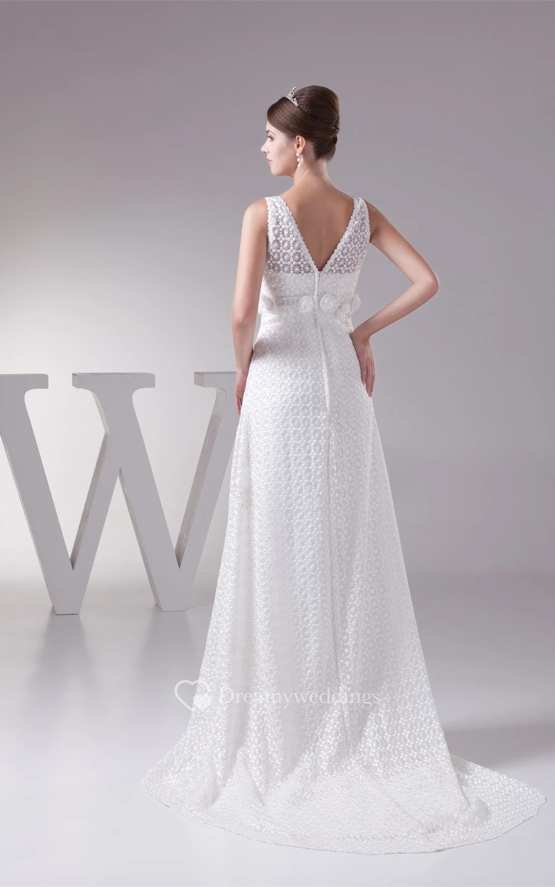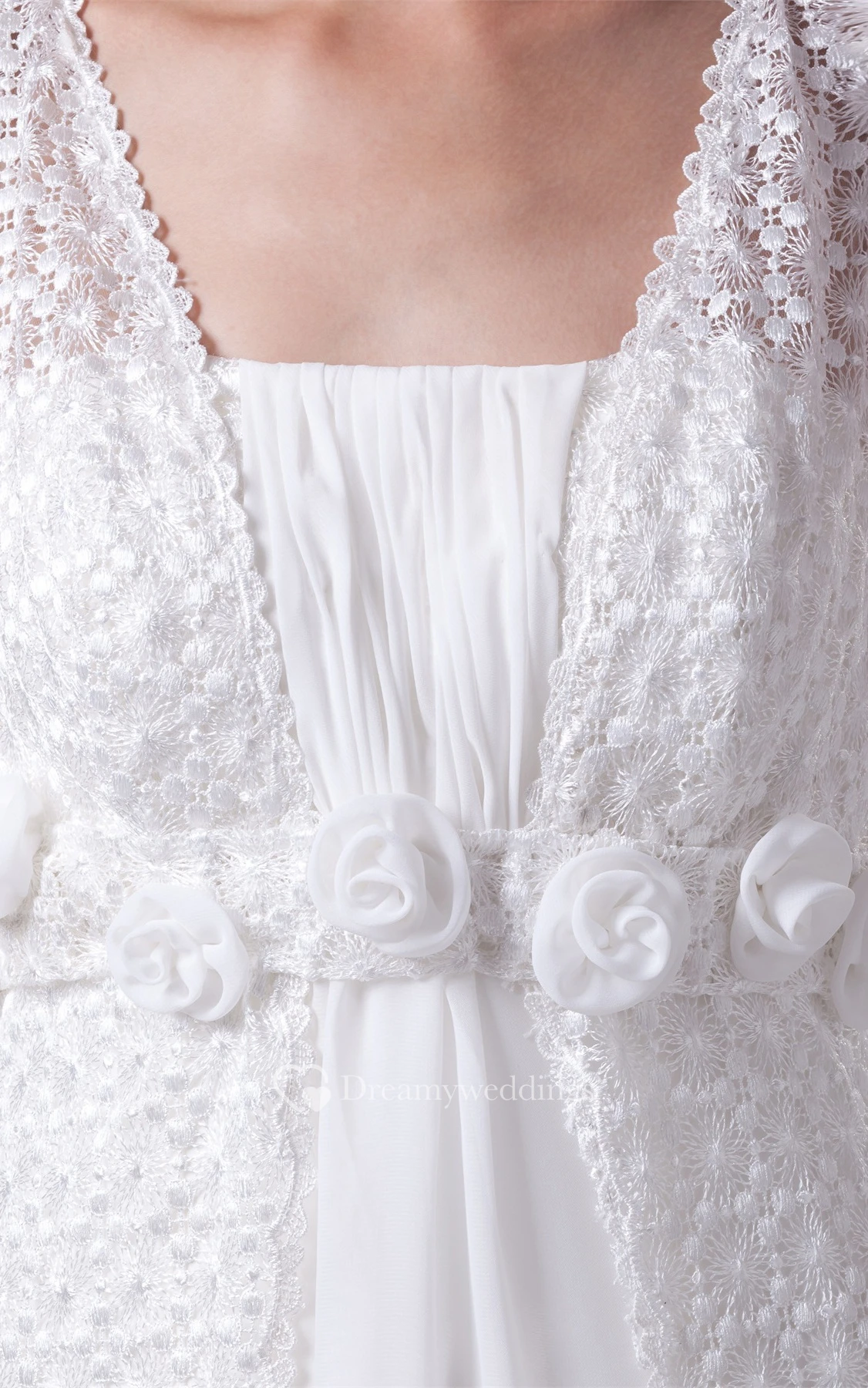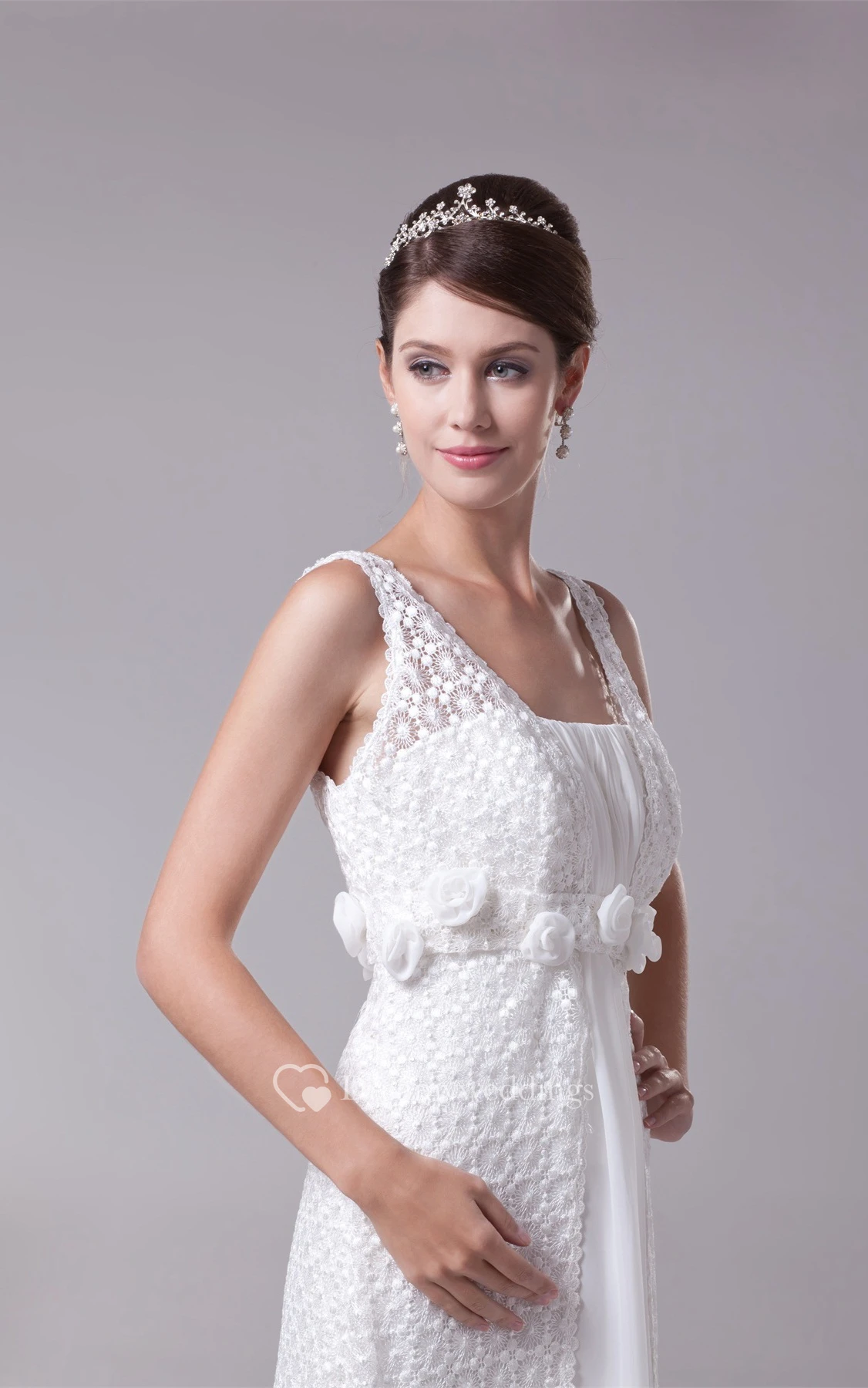 Strapped Empire Chiffon Floral Waist and Dress With Appliques