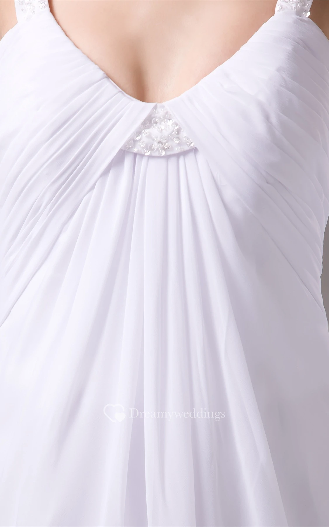 Strapped Empire Floor-Length Chiffon Beading and Dress With Pleats