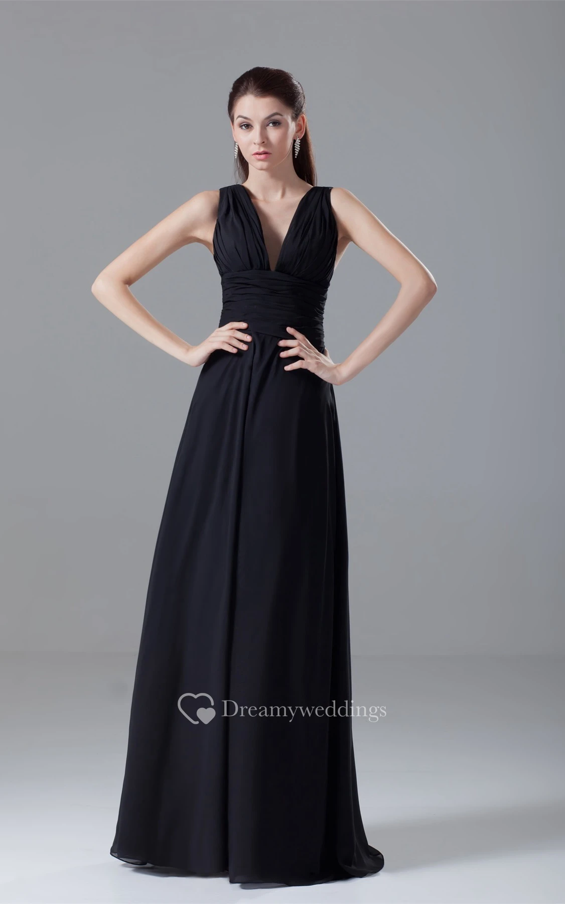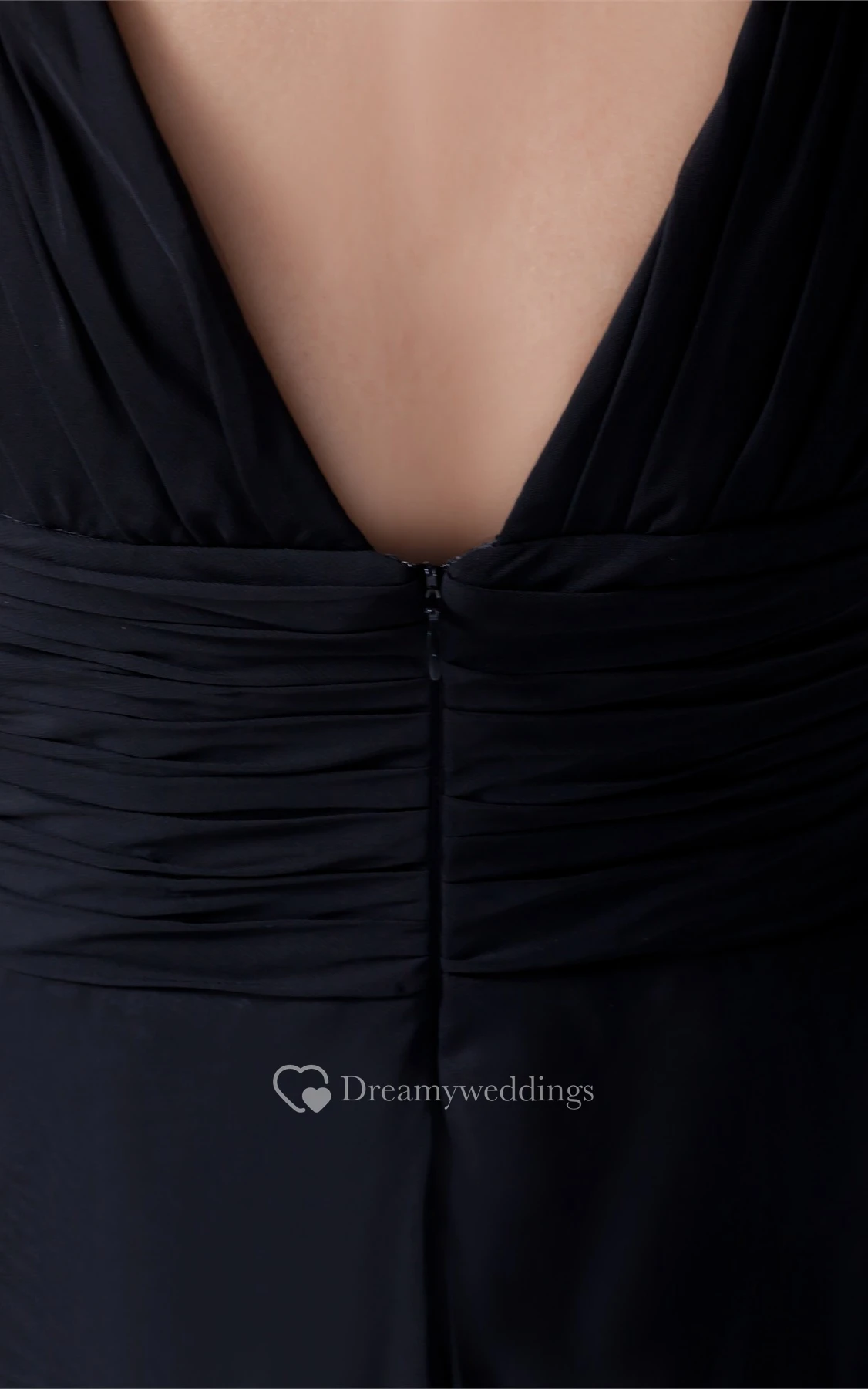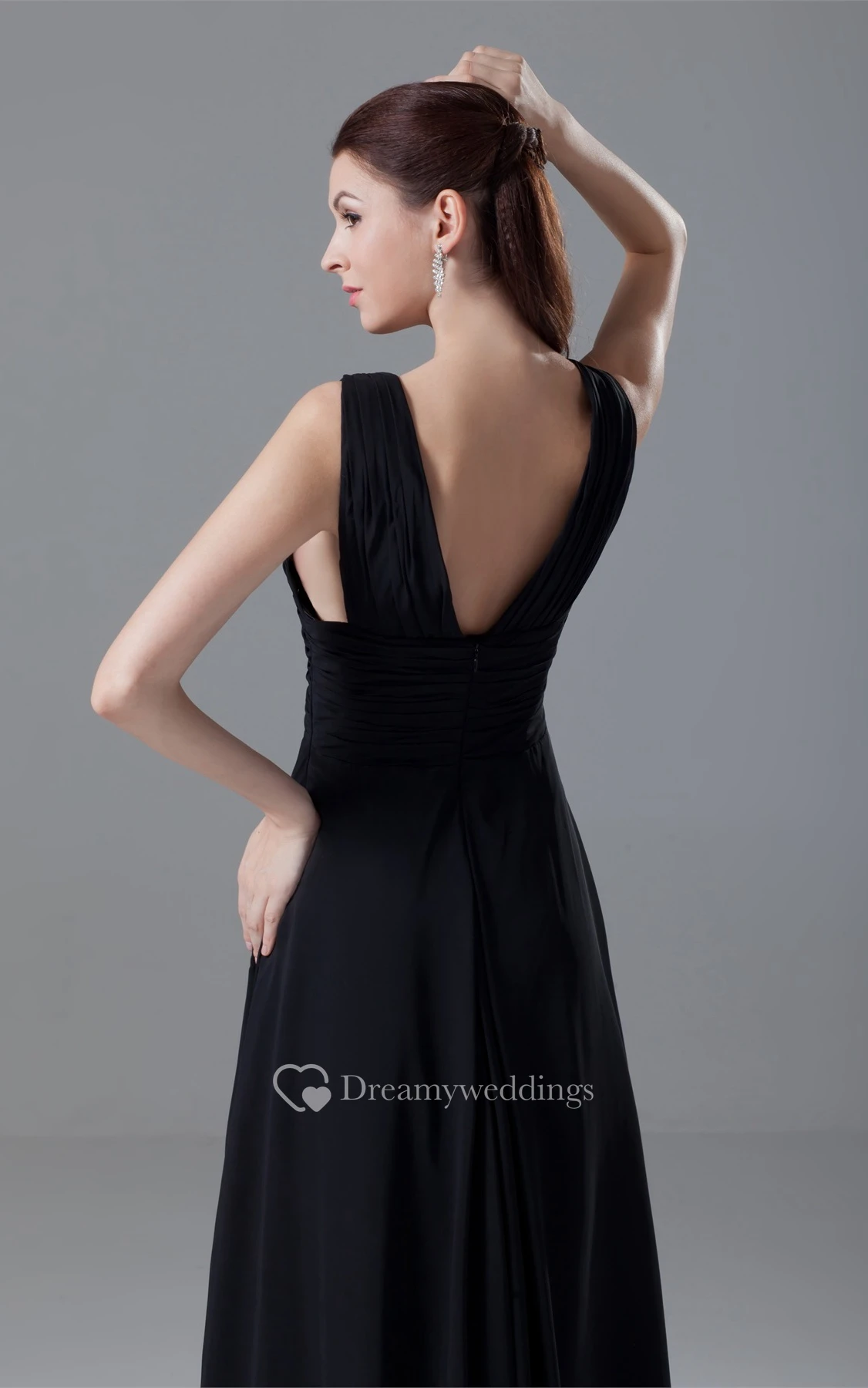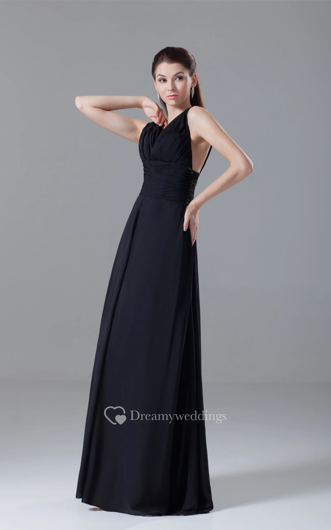 Strapped Floor-Length Chiffon Low-V Back and Dress With Ruching