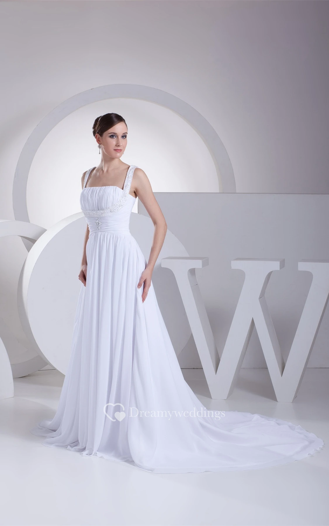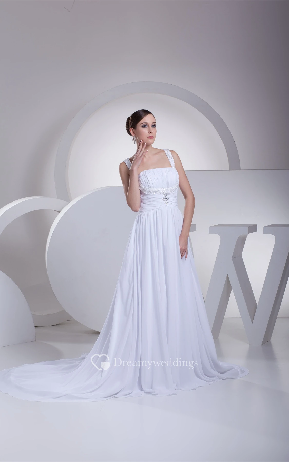 Strapped Long Chiffon Pleats and Dress With Broach