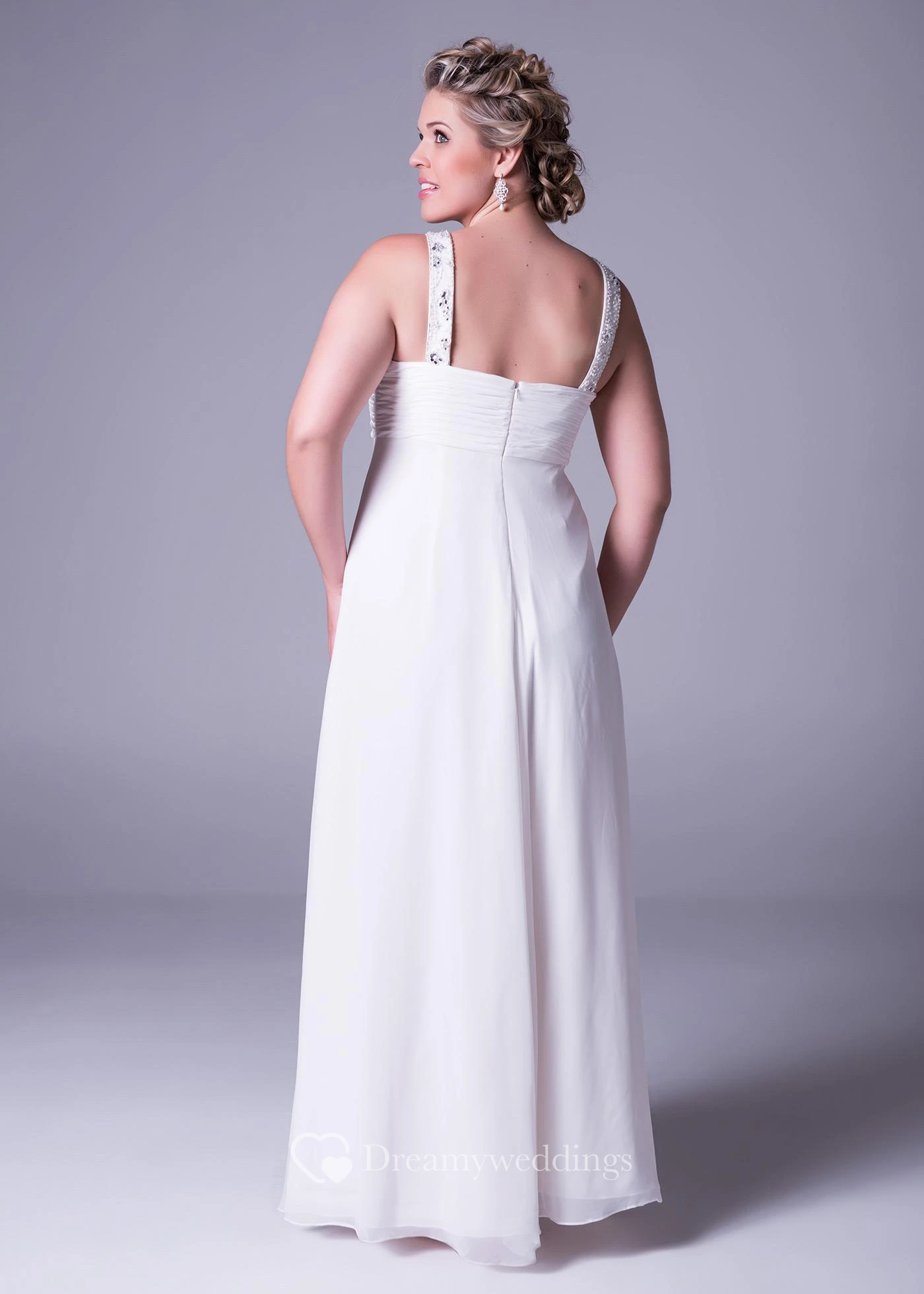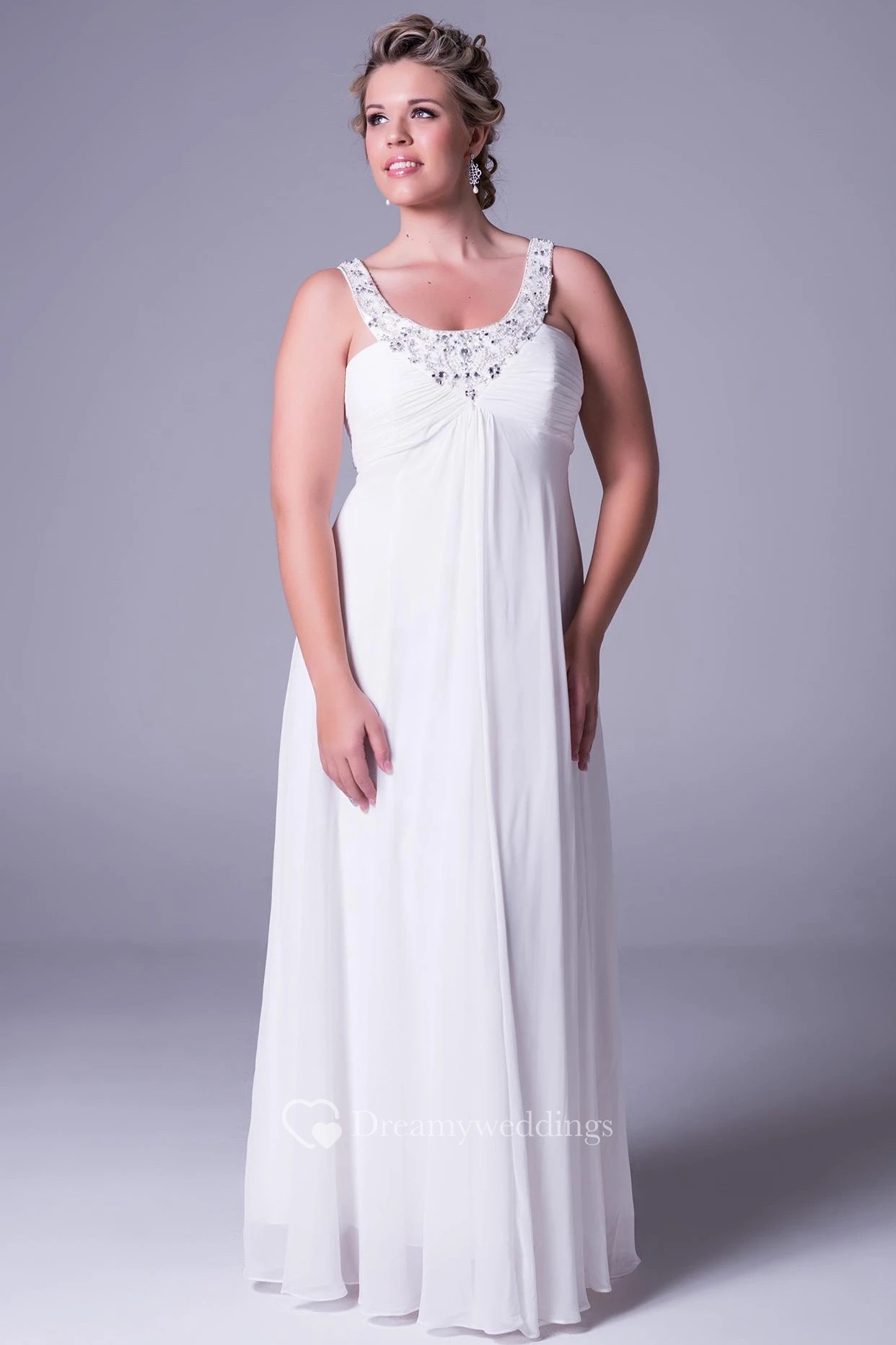 Strapped Ruched Sleeveless Chiffon Plus Size Wedding Dress With Beading And Zipper
