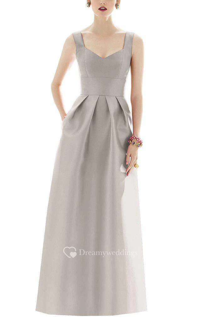 Strapped Satin Pleated Long Dress