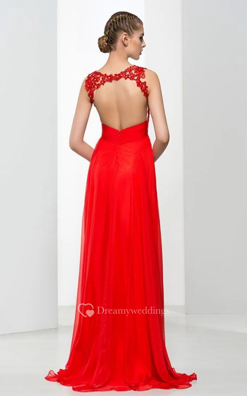 Straps Appliques Beading Backless Long Prom Dress