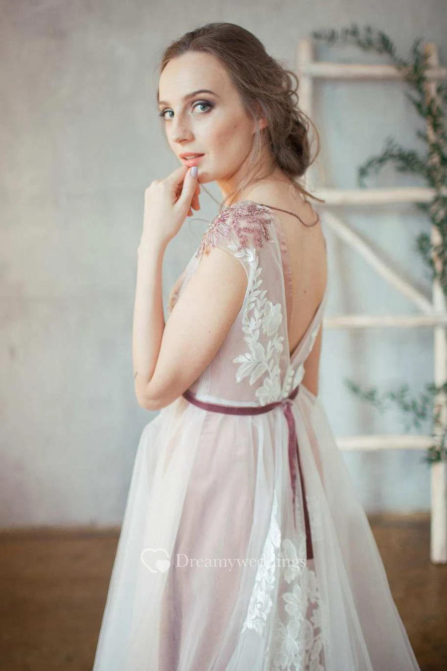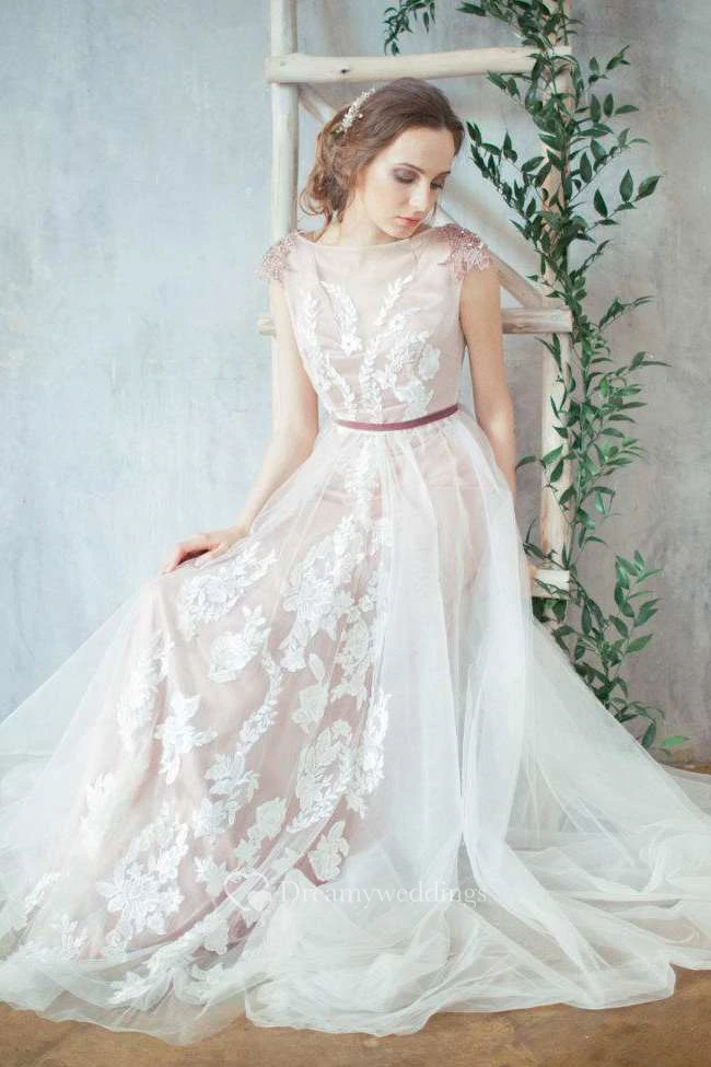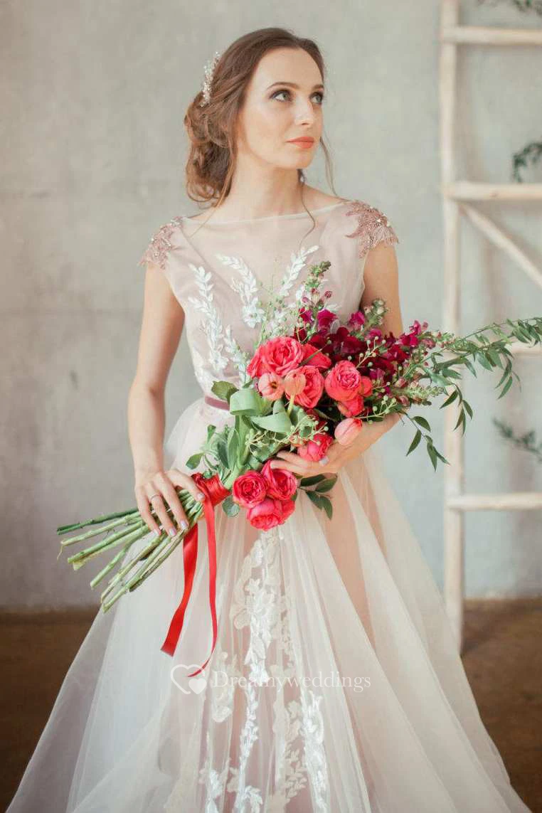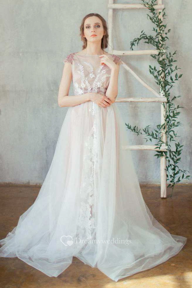 Straps Tulle Beaded Lace Embroidered Wedding Dress