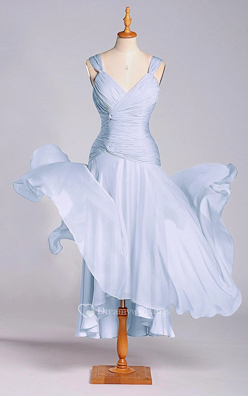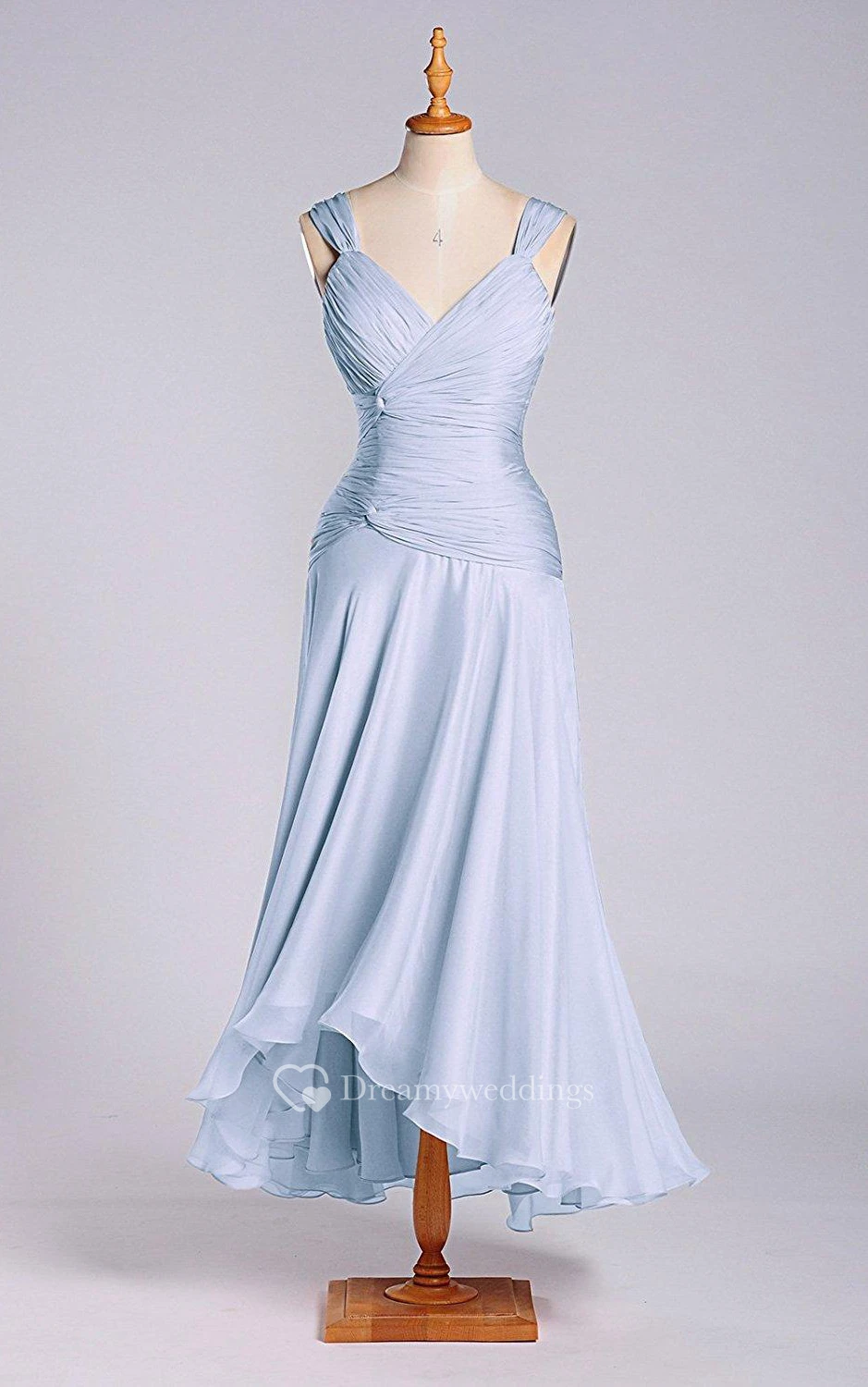 Stunning A-line Tea-length Dress with Dropping and Ruching