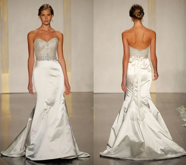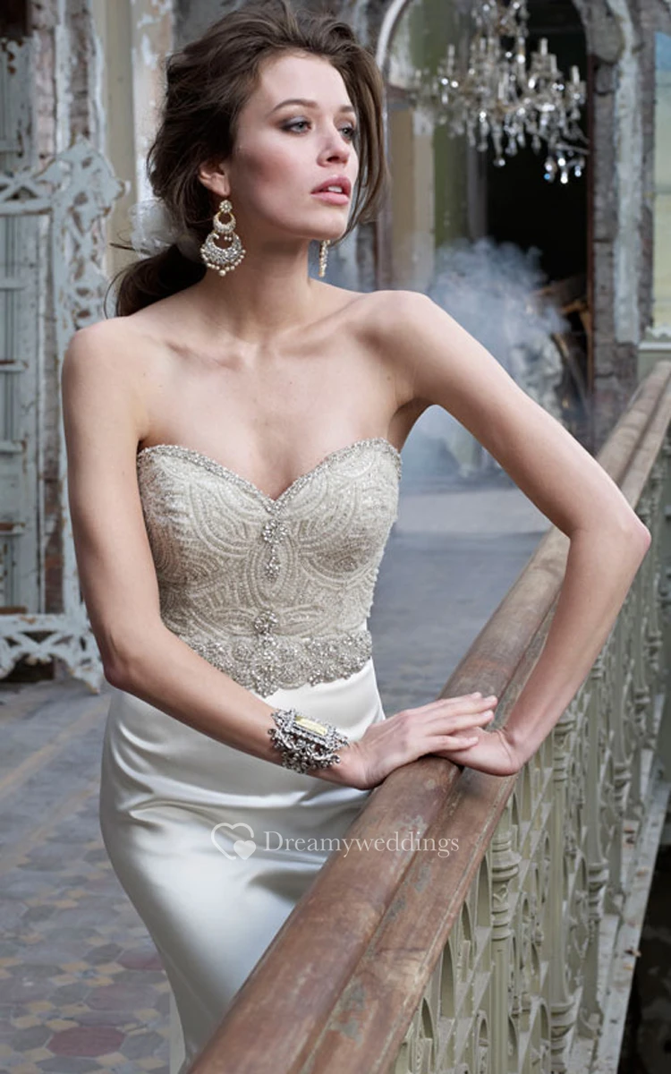 Stunning Beaded Jeweled Embellished Bodice Satin Trumpet Dress
