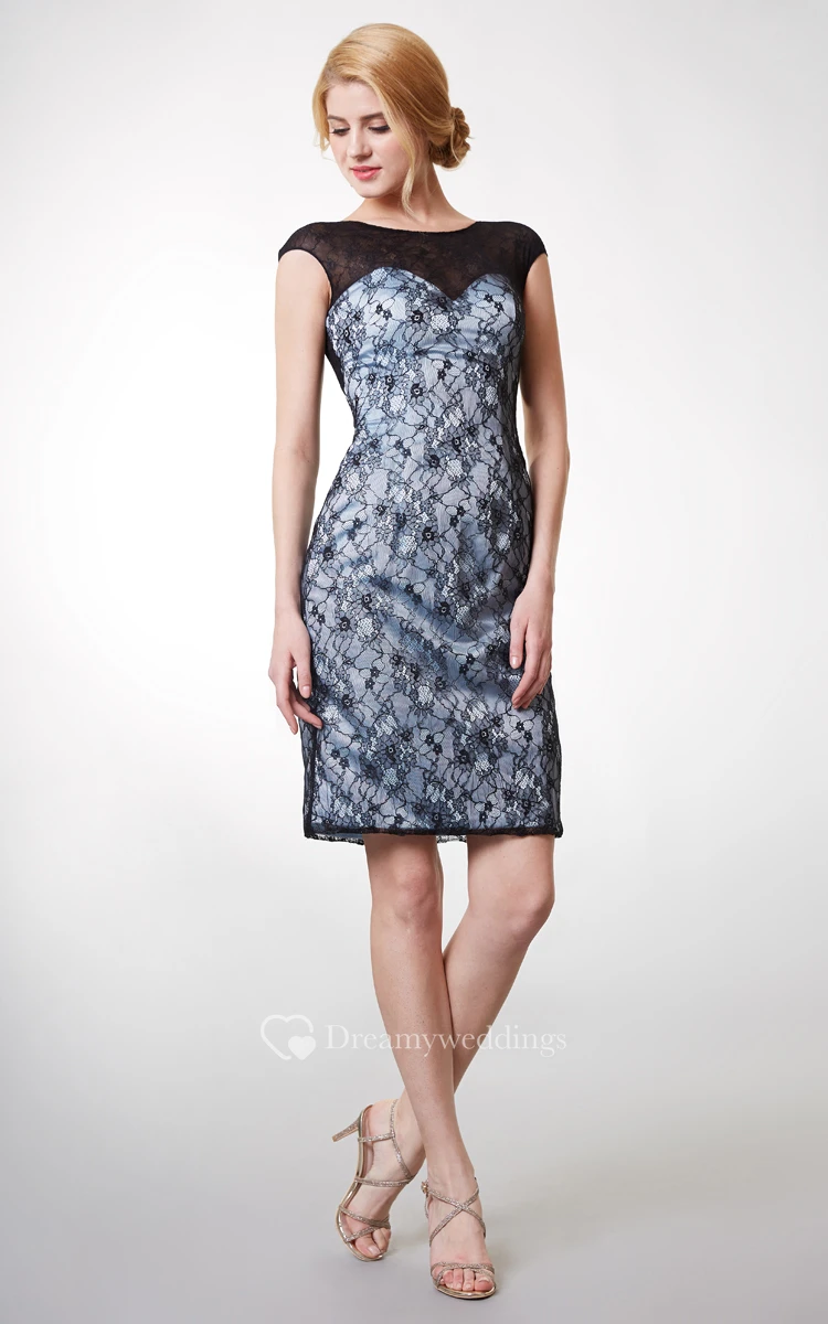 Stunning Short Cap Sleeve Lace Dress With Bateau Neck